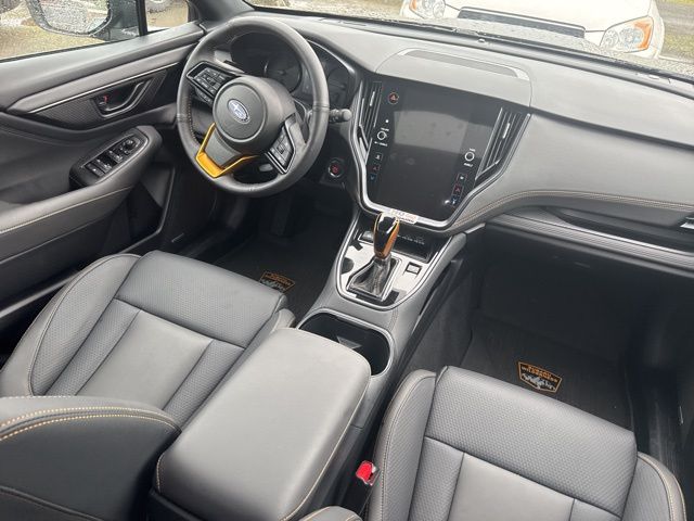 This 2025 Autumn Green Metallic Subaru Outback Wilderness AWD is well equipped and includes these features and benefits: Power Moonroof & Navigation & RAB (Power Moonroof, Radio: Subaru 11.6" Multimedia System w/Navigation, and Reverse Automatic Braking (RAB) System), Carr Care Advantage Certified, 12 Speakers, 4-Wheel Disc Brakes, ABS brakes, Air Conditioning, Alloy wheels, AM/FM radio: SiriusXM with 360L, Apple CarPlay & Android Auto, Auto High-beam Headlights, Auto-dimming Rear-View mirror, Automatic temperature control, Brake assist, Cargo Sidewall Protector, Carpeted Floor Mats, Compass, Driver door bin, Driver vanity mirror, Dual front impact airbags, Dual front side impact airbags, Electronic Stability Control, Emergency communication system: MySubaru Safety (3-year free trial), Exterior Parking Camera Rear, Four wheel independent suspension, Front anti-roll bar, Front Bucket Seats, Front Center Armrest w/Storage, Front dual zone A/C, Front fog lights, Front reading lights, Fully automatic headlights, Garage door transmitter: HomeLink, harman/kardon® Speakers, Heated door mirrors, Heated Front Bucket Seats, Heated front seats, Heated rear seats, Heated steering wheel, Illuminated entry, Knee airbag, Leather steering wheel, LED Upgrade, Low tire pressure warning, Occupant sensing airbag, Outside temperature display, Overhead airbag, Overhead console, Panic alarm, Passenger door bin, Passenger vanity mirror, Power door mirrors, Power driver seat, Power Liftgate, Power passenger seat, Power steering, Power windows, Radio: Subaru 11.6" Multimedia Plus System, Rear anti-roll bar, Rear Seat Back Protector, Rear seat center armrest, Rear window defroster, Rear window wiper, Remote keyless entry, Roof rack, Security system, Speed control, Speed-sensing steering, Splash Guards, Split folding rear seat, Spoiler, StarTex-Trimmed Upholstery, Steering wheel mounted audio controls, Tachometer, Telescoping steering wheel, Tilt steering wheel, Traction control, Trip computer, Turn signal indicator mirrors, Variably intermittent wipers, Wheels: 17" x 7J Matte Black Aluminum-Alloy, and Wireless Charger.