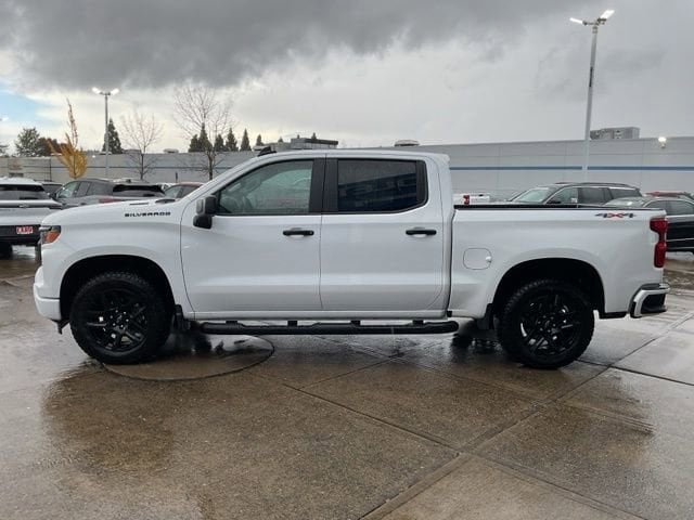 Dealer Discount of $4,198 off MSRPSale Price does not included dealer installed accessories of $990 on all vehicles.2025 Chevrolet Silverado 1500 Custom 4WD Summit White8-Speed Automatic, 4WD, Black Cloth.This 2025 Summit White Chevrolet Silverado 1500 Custom 4WD is well equipped and includes these features and benefits: Custom Convenience Package (Electric Rear-Window Defogger, EZ Lift Power Lock & Release Tailgate, LED Cargo Area Lighting, Remote Vehicle Starter System, and Theft Deterrent System (Unauthorized Entry)), Custom Value Package, Dark Essentials Package (LPO) (Black Name Plates (LPO)), High Capacity Suspension Package, Preferred Equipment Group 1CX (10-Way Power Driver Seat w/Lumbar, 120-Volt Bed Mounted Power Outlet, 120-Volt Interior Power Outlet, 3.5 Monochromatic Display Driver Info Center, Bluetooth® For Phone, Color-Keyed Carpeting Floor Covering, Deep-Tinted Glass, Dual Rear USB Ports (Charge Only), Electronic Cruise Control, Front Frame-Mounted Black Recovery Hooks, Front Rubberized Vinyl Floor Mats, HD Rear Vision Camera, Manual Tilt Wheel Steering Column, OnStar Services Capable, Power Front Windows w/Driver Express Up/Down, Power Front Windows w/Passenger Express Down, Power Rear Windows w/Express Down, Rear 60/40 Folding Bench Seat (Folds Up), Rear Rubberized-Vinyl Floor Mats, Remote Keyless Entry, SiriusXM Trial Subscription, Standard Tailgate, Teen Driver, Tire Pressure Monitoring System, and Wi-Fi Hot Spot Capable), Trailering Package (Hitch Guidance), TurboMax Blackout Package (4 Black Round Assist Steps (LPO), Black Chrome Exhaust Tip (LPO), and Wheels: 20 x 9 High Gloss Black Painted Alum), 8-Speed Automatic, 4WD, Black Cloth, 3.42 Rear Axle Ratio, 4-Wheel Disc Brakes, 40/20/40 Front Split-Bench Seat, 6 Speakers, 6-Speaker Audio System, ABS brakes, Air Conditioning, Alloy wheels, AM/FM radio: SiriusXM, Apple CarPlay/Android Auto, Auto High-beam Headlights, Automatic Emergency Braking, Black Tailgate CHEVROLET Lettering (LPO), Brake assist, Bumpers: body-color, Chevytec Spray-On Black Bedliner, Cloth Seat Trim, Compass, Delay-off headlights, Driver door bin, Driver vanity mirror, Dual front impact airbags, Dual front side impact airbags, Electronic Stability Control, Emergency communication system: OnStar, Following Distance Indicator, Forward Collision Alert, Front anti-roll bar, Front Black Bowtie Emblem (LPO), Front Center Armrest w/Storage, Front License Plate Kit, Front Pedestrian Braking, Front reading lights, Front wheel independent suspension, Fully automatic headlights, Heated door mirrors, Illuminated entry, IntelliBeam Automatic High Beam On/Off, Lane Keep Assist w/Lane Departure Warning, Low tire pressure warning, Occupant sensing airbag, Outside temperature display, Overhead airbag, Overhead console, Panic alarm, Passenger door bin, Passenger vanity mirror, Power door mirrors, Power driver seat, Power steering, Power windows, Premium audio system: Chevrolet Infotainment 3, Radio data system, Radio: Chevrolet Infotainment 3 System, Rear reading lights, Rear step bumper, Rear Wheelhouse Liners, Rear window defroster, Remote keyless entry, Security system, Speed control, Speed-sensing steering, Split folding rear seat, Tachometer, Tilt steering wheel, Traction control, Trip computer, Variably intermittent wipers, Voltmeter, and Wheels: 20 x 9 Bright Silver Painted Aluminum. Price includes: $1000 - Bonus Cash. Exp. 01/02/2026 $1000 - Bonus Cash. Exp. 01/02/2026 $1000 - Select Market Purchase Bonus Cash. Exp. 01/02/2026 $3000 - Customer Cash. Exp. 01/02/2026