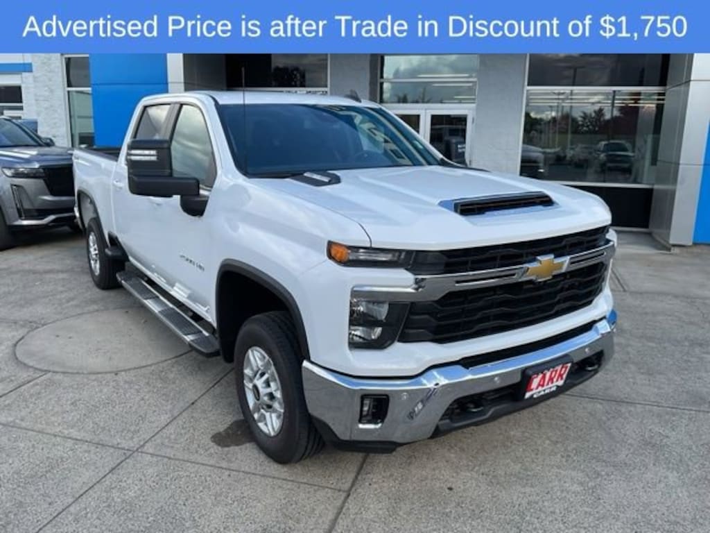 Dealer Discount of $7,819 off MSRPCarr Chevrolet is a trusted dealership known for excellent service, a wide range of new and pre-owned vehicles, and competitive pricing, as well as excellent customer service reflected in our 4.5-star Google rating. Committed to our community and building lifelong customer relationships, we include CARR Care coverage, our exclusive lifetime powertrain warranty and 10 years of roadside assistance with most vehicles. 2025 Chevrolet Silverado 2500HD LT 4WD Summit White10-Speed Automatic, 4WD, Black Cloth.This 2025 Summit White Chevrolet Silverado 2500HD LT 4WD is well equipped and includes these features and benefits: Convenience Package (10-Way Power Driver Seat Adjuster with Lumbar, Dual-Zone Automatic Climate Control, Front LED Fog Lamps, LED Cargo Area Lighting, and Manual Tilt and Telescoping Steering Column), Heat Package (Heated Driver and Front Outboard Passenger Seating and Heated Steering Wheel), Preferred Equipment Group 1LT (120-Volt Bed Mounted Power Outlet, 120-Volt Interior Power Outlet, 17 Machined Aluminum Wheels, 170 Amp Alternator, 2-Speed Electronic Shift Transfer Case, 4-Way Manual Driver Seat Adjuster, Black Mirror Caps, Bluetooth® For Phone, Chevrolet Connected Access Capable, Color-Keyed Carpeting Floor Covering, Compass, Deep-Tinted Glass, Durabed Pickup Bed, Electronic Cruise Control with Set and Resume Speed, EZ Lift Power Lock and Release Tailgate, Front Rubberized Vinyl Floor Mats, Halogen Reflector Headlamps, HD Rear Vision Camera, Heated Vertical Trailering Mirrors, Keyless Open and Start, OnStar Services Capable, Power Door Locks, Power Front Windows with Driver Express Up/Down, Power Front Windows with Passenger Express Down, Power Rear Windows with Express Down, Push Button Start, Rear 60/40 Folding Bench Seat (folds Up), Rear Rubberized Vinyl Floor Mats, SiriusXM with 360L Trial Subscription, Standard Tailgate, Steering Wheel Audio Controls, Wi-Fi Hotspot Capable, Wireless Phone Projection, and Wrapped Steering Wheel), Remote Start Package (Electric Rear-Window Defogger, Remote Vehicle Starter System, and Unauthorized Entry Theft-Deterrent System), Safety Package (Bed View Camera with Two Trailer Camera Provisions, HD Surround Vision, in-Vehicle Trailering App System, Rear Cross Traffic Alert, Trailer Camera Provisions, Trailer Side Blind Zone Alert, and Ultrasonic Front and Rear Park Assist), Suspension Package, 10-Speed Automatic, 4WD, Black Cloth, 220 Amp Alternator, 4-Wheel Disc Brakes, 6 Speakers, 6-Speaker Audio System, 6 Rectangular Chromed Tubular Assist Steps, 720 Cold-Cranking Amps Heavy-Duty Battery, ABS brakes, Air Conditioning, Alloy wheels, AM/FM radio: SiriusXM with 360L, Apple CarPlay/Android Auto, Auto High-beam Headlights, Auto-Dimming Inside Rear-View Mirror, Black Chevytec Spray-on Bedliner, Brake assist, Bumpers: chrome, Cloth Seat Trim, Delay-off headlights, Driver door bin, Driver vanity mirror, Dual front impact airbags, Dual front side impact airbags, Electronic Stability Control, Emergency communication system: OnStar, Engine Block Heater, Exhaust Brake, Front 40/20/40 Split-Bench Seats with Lockable Storage, Front anti-roll bar, Front Center Armrest w/Storage, Front License Plate Kit, Front reading lights, Front wheel independent suspension, Fully automatic headlights, Heated and Auto-Dimming Vertical Trailering Mirrors, Heated door mirrors, Illuminated entry, Low tire pressure warning, Mobile Service Plus, Occupant sensing airbag, Outside temperature display, Overhead airbag, Overhead console, Panic alarm, Passenger door bin, Passenger vanity mirror, Power door mirrors, Power steering, Power windows, Premium audio system: Chevrolet Infotainment 3 Premium, Radio: Chevrolet Infotainment 3 Premium System, Rear reading lights, Rear step bumper, Remote keyless entry, Speed control, Split folding rear seat, Steering wheel mounted audio controls, Tachometer, Tilt steering whe Price includes: $1000 - Customer Cash.