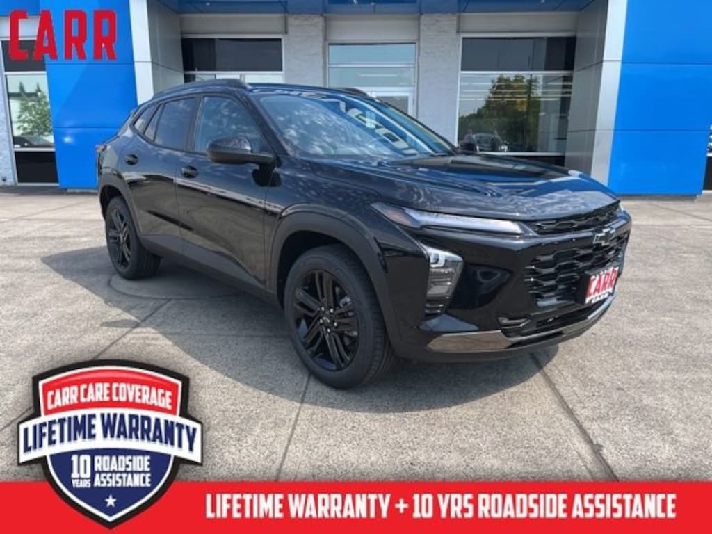 Carr Chevrolet is a trusted dealership known for excellent service, a wide range of new and pre-owned vehicles, and competitive pricing, as well as excellent customer service reflected in our 4.5-star Google rating. Committed to our community and building lifelong customer relationships, we include CARR Care coverage, our exclusive lifetime powertrain warranty and 10 years of roadside assistance with most vehicles. 2025 Chevrolet Trax ACTIV FWD Mosaic Black Metallic