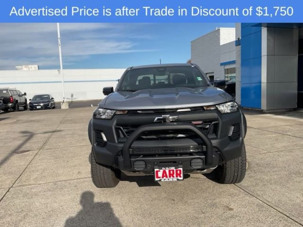 Dealer Discount of $5,620 off MSRPCarr Chevrolet is a trusted dealership known for excellent service, a wide range of new and pre-owned vehicles, and competitive pricing, as well as excellent customer service reflected in our 4.5-star Google rating. Committed to our community and building lifelong customer relationships, we include CARR Care coverage, our exclusive lifetime powertrain warranty and 10 years of roadside assistance with most vehicles. 2026 Chevrolet Colorado Trail Boss 4WD Sterling Gray Metallic4WD.This 2026 Sterling Gray Metallic Chevrolet Colorado Trail Boss 4WD is well equipped and includes these features and benefits: Off-Road Front Bumper Package (30 Grille-Mounted Off-Road Grille Light Bar, Accessory Power Distribution Box, Off-Road Bumper Lights Wiring Harness, Off-Road Bumper Pod Lights, and Off-Road Front Bumper with Safari Bar), Preferred Equipment Group 0TR (Automatic Emergency Braking, Chevy Safety Assist, Following Distance Indicator, Forward Collision Alert, Front Pedestrian and Bicyclist Braking, IntelliBeam Automatic High Beam on/Off, and Lane Keep Assist with Lane Departure Warning), Technology Package (Adaptive Cruise Control, HD Surround Vision, and Rear Pedestrian Alert), Trail Boss Convenience Package II (4-Spoke Wrapped Steering Wheel, 8-Way Power Driver Seat Adjuster, Driver and Front Passenger Heated Seats, Evotex Seat Trim, Heated Steering Wheel, Power Driver Lumbar Control Seat Adjuster, Remote Vehicle Starter System, and Wireless Phone Charging), 4WD, 3.42 Rear Axle Ratio, 4-Way Manual Passenger Seat Adjuster, 4-Wheel Disc Brakes, 6 Speakers, 6-Speaker Audio System Feature, 6-Way Manual Driver Seat Adjuster, ABS brakes, Air Conditioning, Alloy wheels, AM/FM radio: SiriusXM with 360L, Apple CarPlay/Android Auto, Auto High-beam Headlights, Automatic temperature control, Brake assist, Cloth Seat Trim, Compass, Delay-off headlights, Driver door bin, Driver vanity mirror, Dual front impact airbags, Dual front side impact airbags, Electronic Stability Control, Emergency communication system: OnStar, Front anti-roll bar, Front Bucket Seats, Front Center Armrest, Front dual zone A/C, Front License Plate Kit, Front wheel independent suspension, Heated door mirrors, Illuminated entry, Low tire pressure warning, Navigation System, Occupant sensing airbag, Outside temperature display, Overhead airbag, Overhead console, Panic alarm, Passenger door bin, Passenger vanity mirror, Power door mirrors, Power steering, Power windows, Radio data system, Radio: 11.3 Diagonal Advanced Color LCD Display, Rear reading lights, Rear step bumper, Rear window defroster, Remote keyless entry, Security system, SiriusXM with 360L Trial Subscription, Speed control, Speed-sensing steering, Split folding rear seat, Steering Wheel Mounted Audio Controls, Steering wheel mounted audio controls, Tachometer, Tilt steering wheel, Traction control, Trip computer, Variably intermittent wipers, Wheels: 18 x 8.5 Black High Gloss Aluminum, Wheels: 20 x 9 High Gloss Black Aluminum, and Wireless Phone Projection. Price includes: $500 - Customer Cash. Exp. 01/02/2026
