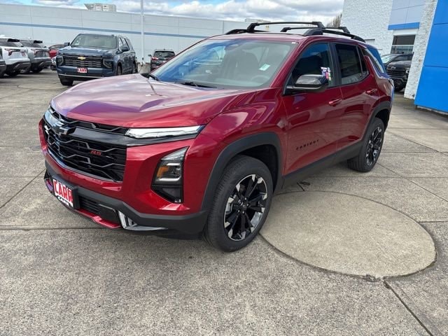This 2026 Radiant Red Tintcoat Chevrolet Equinox RS AWD is well equipped and includes these features and benefits: Convenience Package III (Front Passenger 2-Way Power Lumbar Seat Adjuster, Front Passenger 8-Way Power Seat Adjuster, Heated Rear Outboard Seating Positions, Memory Settings, Ventilated Driver Seat, and Ventilated Front Passenger Seat), Preferred Equipment Group 2RS, AWD, 2-Way Power Driver Lumbar Control Seat Adjuster, 3.47 Final Drive Axle Ratio, 4-Wheel Disc Brakes, 6 Speakers, ABS brakes, Air Conditioning, Alloy wheels, AM/FM radio: SiriusXM, Auto High-beam Headlights, Automatic temperature control, Brake assist, Bumpers: body-color, Compass, Delay-off headlights, Driver 8-Way Power Seat Adjuster, Driver door bin, Driver vanity mirror, Dual front impact airbags, Dual front side impact airbags, Electronic Stability Control, Emergency communication system: OnStar and Chevrolet connected services capable, Evotex Seat Trim, Four wheel independent suspension, Front anti-roll bar, Front Bucket Seats, Front Center Armrest, Front dual zone A/C, Front Passenger 4-Way Manual Seat Adjuster, Front reading lights, Fully automatic headlights, Garage door transmitter, Heated door mirrors, Heated Driver and Front Passenger Seats, Heated front seats, Heated steering wheel, Illuminated entry, Low tire pressure warning, Navigation System, Occupant sensing airbag, Outside temperature display, Overhead airbag, Overhead console, Panic alarm, Passenger door bin, Passenger vanity mirror, Power door mirrors, Power driver seat, Power Dual Glass Panoramic Sliding Sunroof, Power Liftgate, Power steering, Power windows, Premium audio system: Chevrolet Infotainment 3, Radio data system, Radio: 11.3 Diagonal Advanced Color LCD Display, Rain sensing wipers, Rear anti-roll bar, Rear reading lights, Rear seat center armrest, Rear window defroster, Rear window wiper, Remote keyless entry, Retractable Cargo Shade, Roof Rack Cross Rails, Security system, SiriusXM with 360L Trial Subscription, Speed control, Speed-sensing steering, Split folding rear seat, Spoiler, Sport steering wheel, Steering wheel mounted audio controls, Tachometer, Telescoping steering wheel, Tilt steering wheel, Traction control, Trip computer, Variably intermittent wipers, and Wheels: 19 Carbon Flash Metallic Aluminum.