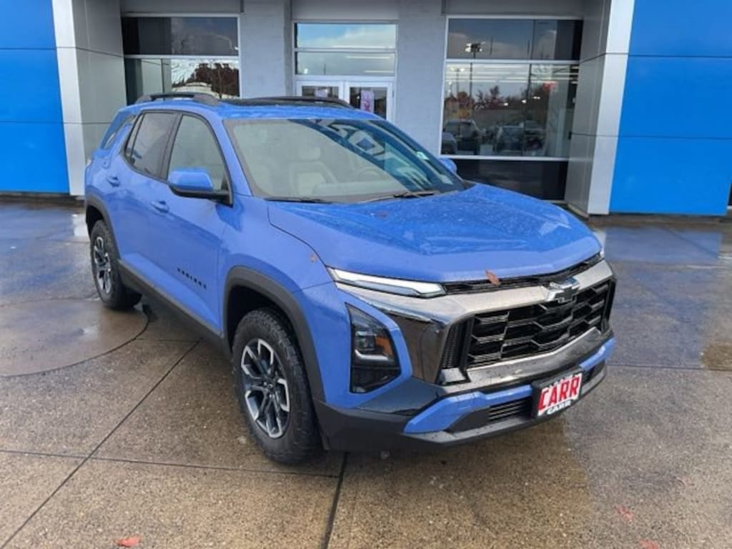This 2026 Reef Blue Metallic Chevrolet Equinox ACTIV AWD is well equipped and includes these features and benefits: Convenience Package III (Front Passenger 2-Way Power Lumbar Seat Adjuster, Front Passenger 8-Way Power Seat Adjuster, Heated Rear Outboard Seating Positions, Memory Settings, Ventilated Driver Seat, and Ventilated Front Passenger Seat), Preferred Equipment Group KDZ, AWD, 2-Way Power Driver Lumbar Control Seat Adjuster, 3.47 Final Drive Axle Ratio, 4-Wheel Disc Brakes, 6 Speakers, ABS brakes, Air Conditioning, Alloy wheels, AM/FM radio: SiriusXM, Auto High-beam Headlights, Automatic temperature control, Brake assist, Bumpers: body-color, Compass, Delay-off headlights, Driver 8-Way Power Seat Adjuster, Driver door bin, Driver vanity mirror, Dual front impact airbags, Dual front side impact airbags, Electronic Stability Control, Emergency communication system: OnStar and Chevrolet connected services capable, Four wheel independent suspension, Front anti-roll bar, Front Bucket Seats, Front Center Armrest, Front dual zone A/C, Front Passenger 4-Way Manual Seat Adjuster, Front reading lights, Fully automatic headlights, Garage door transmitter, Heated door mirrors, Heated Driver & Front Passenger Seats, Heated front seats, Heated steering wheel, Illuminated entry, Low tire pressure warning, Navigation System, Occupant sensing airbag, Outside temperature display, Overhead airbag, Overhead console, Panic alarm, Passenger door bin, Passenger vanity mirror, Power door mirrors, Power driver seat, Power Dual Glass Panoramic Sliding Sunroof, Power Liftgate, Power steering, Power windows, Premium audio system: Chevrolet Infotainment 3 Plus, Radio data system, Radio: 11.3 Diagonal Advanced Color LCD Display, Rain sensing wipers, Rear anti-roll bar, Rear reading lights, Rear seat center armrest, Rear window defroster, Rear window wiper, Remote keyless entry, Security system, SiriusXM w/360L Trial Subscription, Speed control, Speed-sensing steering, Split folding rear seat, Spoiler, Steering wheel mounted audio controls, Sueded Microfiber Seat Trim, Tachometer, Telescoping steering wheel, Tilt steering wheel, Traction control, Trip computer, Variably intermittent wipers, and Wheels: 17 Dark Android Machined-Face Aluminum.