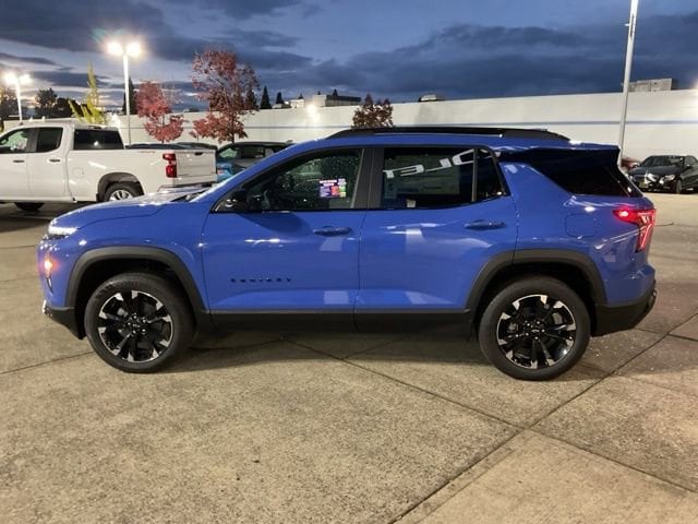 This 2026 Reef Blue Metallic Chevrolet Equinox RS AWD is well equipped and includes these features and benefits: Convenience Package III (Front Passenger 2-Way Power Lumbar Seat Adjuster, Front Passenger 8-Way Power Seat Adjuster, Heated Rear Outboard Seating Positions, Memory Settings, Ventilated Driver Seat, and Ventilated Front Passenger Seat), Preferred Equipment Group 2RS, AWD, 2-Way Power Driver Lumbar Control Seat Adjuster, 3.47 Final Drive Axle Ratio, 4-Wheel Disc Brakes, 6 Speakers, ABS brakes, Air Conditioning, Alloy wheels, AM/FM radio: SiriusXM, Auto High-beam Headlights, Automatic temperature control, Brake assist, Bumpers: body-color, Compass, Delay-off headlights, Driver 8-Way Power Seat Adjuster, Driver door bin, Driver vanity mirror, Dual front impact airbags, Dual front side impact airbags, Electronic Stability Control, Emergency communication system: OnStar and Chevrolet connected services capable, Evotex Seat Trim, Four wheel independent suspension, Front anti-roll bar, Front Bucket Seats, Front Center Armrest, Front dual zone A/C, Front Passenger 4-Way Manual Seat Adjuster, Front reading lights, Fully automatic headlights, Garage door transmitter, Heated door mirrors, Heated Driver & Front Passenger Seats, Heated front seats, Heated steering wheel, Illuminated entry, Low tire pressure warning, Navigation System, Occupant sensing airbag, Outside temperature display, Overhead airbag, Overhead console, Panic alarm, Passenger door bin, Passenger vanity mirror, Power door mirrors, Power driver seat, Power Dual Glass Panoramic Sliding Sunroof, Power Liftgate, Power steering, Power windows, Premium audio system: Chevrolet Infotainment 3, Radio data system, Radio: 11.3 Diagonal Advanced Color LCD Display, Rain sensing wipers, Rear anti-roll bar, Rear reading lights, Rear seat center armrest, Rear window defroster, Rear window wiper, Remote keyless entry, Security system, SiriusXM w/360L Trial Subscription, Speed control, Speed-sensing steering, Split folding rear seat, Spoiler, Sport steering wheel, Steering wheel mounted audio controls, Tachometer, Telescoping steering wheel, Tilt steering wheel, Traction control, Trip computer, Variably intermittent wipers, and Wheels: 19 Carbon Flash Metallic Aluminum.
