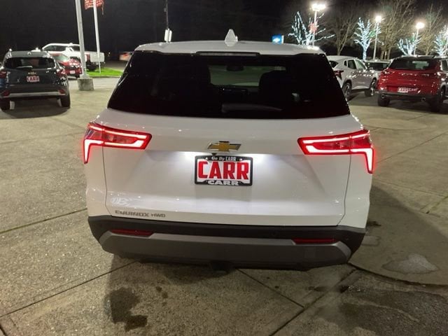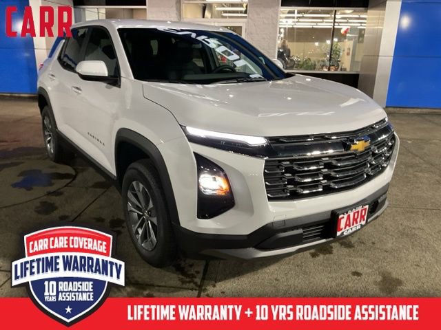 Dealer Discount of $3,250 off MSRPCarr Chevrolet is a trusted dealership known for excellent service, a wide range of new and pre-owned vehicles, and competitive pricing, as well as excellent customer service reflected in our 4.5-star Google rating. Committed to our community and building lifelong customer relationships, we include CARR Care coverage, our exclusive lifetime powertrain warranty and 10 years of roadside assistance with most vehicles. 2026 Chevrolet Equinox LT AWD Summit WhiteAWD.24/29 City/Highway MPGThis 2026 Summit White Chevrolet Equinox LT AWD is well equipped and includes these features and benefits: Preferred Equipment Group 2LT, AWD, 3.47 Final Drive Axle Ratio, 4-Wheel Disc Brakes, 6 Speakers, ABS brakes, Air Conditioning, Alloy wheels, AM/FM radio: SiriusXM, Auto High-beam Headlights, Brake assist, Bumpers: body-color, Cloth Seat Trim, Compass, Delay-off headlights, Driver 6-Way Manual Seat Adjuster, Driver door bin, Driver vanity mirror, Dual front impact airbags, Dual front side impact airbags, Electronic Stability Control, Emergency communication system: OnStar and Chevrolet connected services capable, Four wheel independent suspension, Front anti-roll bar, Front Bucket Seats, Front Center Armrest, Front Passenger 4-Way Manual Seat Adjuster, Front reading lights, Fully automatic headlights, Heated door mirrors, Heated Driver and Front Passenger Seats, Heated front seats, Heated steering wheel, Illuminated entry, Low tire pressure warning, Navigation System, Occupant sensing airbag, Outside temperature display, Overhead airbag, Overhead console, Panic alarm, Passenger door bin, Passenger vanity mirror, Power door mirrors, Power steering, Power windows, Premium audio system: Chevrolet Infotainment 3, Radio data system, Radio: 11.3 Diagonal Advanced Color LCD Display, Rear anti-roll bar, Rear reading lights, Rear seat center armrest, Rear window defroster, Rear window wiper, Remote keyless entry, Security system, SiriusXM with 360L Trial Subscription, Speed control, Speed-sensing steering, Split folding rear seat, Spoiler, Steering wheel mounted audio controls, Tachometer, Telescoping steering wheel, Tilt steering wheel, Traction control, Trip computer, Variably intermittent wipers, and Wheels: 17 Grazen Metallic Machined-Face Aluminum.
