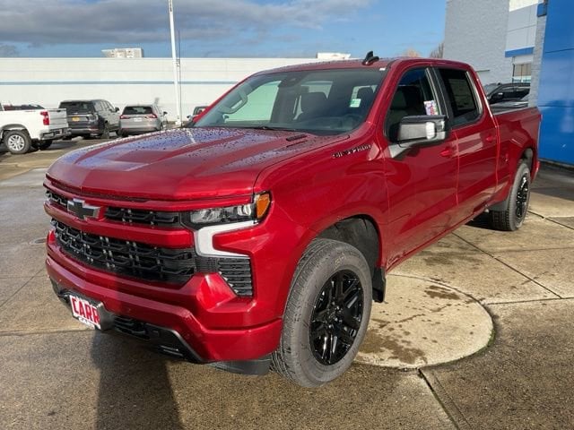 This 2026 Radiant Red Tintcoat Chevrolet Silverado 1500 RST 4WD is well equipped and includes these features and benefits: All Star Edition Plus (Wheels: 20 x 9 Painted Aluminum), Convenience Package (10-Way Power Driver Seat w/Lumbar, 120-Volt Bed Mounted Power Outlet, 120-Volt Interior Power Outlet, Dual Rear USB Ports (Charge Only), Dual-Zone Automatic Climate Control, Electric Rear-Window Defogger, Heated Driver & Front Outboard Passenger Seats, Heated Steering Wheel, Keyless Open & Start, LED Cargo Area Lighting, Manual Tilt/Telescoping Steering Column, Remote Vehicle Starter System, Theft Deterrent System (Unauthorized Entry), and Wrapped Steering Wheel), Convenience Package II (Hitch Guidance w/Hitch View, In-Vehicle Trailering System App, Power Sliding Rear Window w/Rear Defogger, Premium Bose 7-Speaker Sound System, and Universal Home Remote), Dark Appearance Package (Wheels: 20 x 9 High Gloss Black Painted Alum), High Capacity Suspension Package, Leather Package (Leather-Appointed Front Seat Trim), Preferred Equipment Group 1SP (12.3 Multicolor Reconfigurable Digital Display, 6-Speaker Audio System, All-Star Edition, Auto-Locking Rear Differential, Bluetooth® For Phone, Color-Keyed Carpeting Floor Covering, Deep-Tinted Glass, Electronic Cruise Control, EZ Lift Power Lock & Release Tailgate, Front Frame-Mounted Black Recovery Hooks, Front LED Fog Lamps, Front Rubberized Vinyl Floor Mats, HD Rear Vision Camera, Heated Power-Adjustable Outside Mirrors, High Gloss Black Mirror Caps, Inside Rear-View Mirror w/Tilt, Integrated Trailer Brake Controller, OnStar Services Capable, Power Front Windows w/Driver Express Up/Down, Power Front Windows w/Passenger Express Down, Power Rear Windows w/Express Down, Rear 60/40 Folding Bench Seat (Folds Up), Rear Rubberized-Vinyl Floor Mats, SiriusXM w/360L Trial Subscription, Standard Tailgate, Steering Wheel Audio Controls, Teen Driver, Tire Pressure Monitoring System, and Wi-Fi Hot Spot Capable), Protection Package (Chevytec Spray-On Black Bedliner and Rear Wheelhouse Liners), RST All Star Premium Package (Adaptive Cruise Control), Safety Package (HD Surround Vision, Perimeter Lighting, Rear Cross Traffic Braking, Rear Pedestrian Alert, Trailer Camera Provisions, Trailer Side Blind Zone Alert, and Ultrasonic Front & Rear Park Assist), Standard Suspension Package, Trailering Package (Hitch Guidance), Up-Level Rear Seat w/Storage Package, 10-Speed Automatic, 4WD, Black Leather, 2 USB Data Ports, 220 Amp Alternator, 3.23 Rear Axle Ratio, 4-Wheel Disc Brakes, 40/20/40 Front Split-Bench Seat, 6 Speakers, ABS brakes, Air Conditioning, All-Weather Floor Liner (LPO), Alloy wheels, AM/FM radio: SiriusXM with 360L, Apple CarPlay/Android Auto, Auto High-beam Headlights, Automatic Emergency Braking, Automatic temperature control, Black Tailgate CHEVROLET Lettering (LPO), Brake assist, Bumpers: body-color, Cloth Seat Trim, Compass, Delay-off headlights, Driver door bin, Driver vanity mirror, Dual Exhaust w/Polished Outlets, Dual front impact airbags, Dual front side impact airbags, Electronic Stability Control, Electronic Transmission Range Selector Shifter, Emergency communication system: OnStar, Engine Block Heater, Floor Mounted Center Console, Following Distance Indicator, Forward Collision Alert, Front anti-roll bar, Front Bucket Seats, Front Center Armrest w/Storage, Front dual zone Price includes: $1750 - Bonus Cash