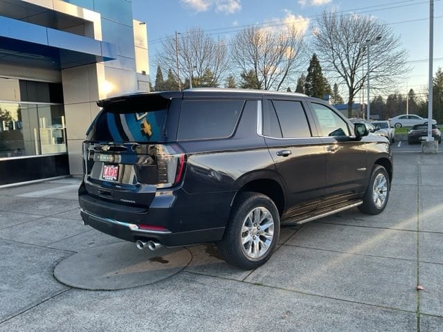 This 2026 Dark Ash Metallic Chevrolet Tahoe Premier 4WD is well equipped and includes these features and benefits: 4WD, Jet Black Leather, 10 Speakers, 1st and 2nd Row Color-Keyed Carpeted Floor Mats, 20 x 9 Polished Aluminum Wheels, 3-Spoke Wrapped Steering Wheel, 3.23 Rear Axle Ratio, 3rd Row 60/40 Power-Folding Split-Bench Seat, 3rd row seats: split-bench, 4-Way Power Driver Lumbar Seat Adjuster, 4-Way Power Front Passenger Lumbar Seat Adjuster, 4-Wheel Disc Brakes, 8-Way Power Driver Seat Adjuster, 8-Way Power Front Passenger Seat Adjuster, ABS brakes, Adaptive suspension, Air Conditioning, Alloy wheels, AM/FM radio: SiriusXM with 360L, Apple CarPlay/Android Auto, Auto High-beam Headlights, Auto-dimming door mirrors, Auto-Dimming Inside Rear-View Mirror, Auto-dimming Rear-View mirror, Auto-leveling suspension, Automatic temperature control, Bose 10-Speaker Centerpoint Surround Audio System Feature, Brake assist, Bright Front and Rear Door Sill Plates, Bumpers: body-color, Chrome Door Handles with Body-Color Strip, Chrome Mirror Caps, Color-Keyed Carpeting Floor Covering, Compass, Delay-off headlights, Driver and Front Passenger Heated and Ventilated Seats, Driver door bin, Driver vanity mirror, Dual Exhaust System, Dual front impact airbags, Dual front side impact airbags, Electronic Stability Control, Emergency communication system: OnStar and Chevrolet connected services capable, Exterior Parking Camera Rear, Floor Console, Four wheel independent suspension, Front anti-roll bar, Front Bucket Seats, Front Center Armrest, Front dual zone A/C, Front fog lights, Front LED Fog Lamps, Front reading lights, Frontal Driver and Outboard Passenger Airbags, Fully automatic headlights, Garage door transmitter, Heated 2nd Row Outboard Seats, Heated door mirrors, Heated Driver and Front Passenger Seats, Heated front seats, Heated rear seats, Heated Steering Wheel, Heated steering wheel, Illuminated entry, Interior Camera, Key Card, LED Headlamps with LED Daytime Running Lamps, LED Tail Lamps, Low tire pressure warning, Magnetic Ride Control Suspension, Memory seat, Memory Settings, Navigation system: Google built-in compatibility (select service plan required, terms and limitations apply), Occupant sensing airbag, Outside Heated Power-Adjustable Mirrors, Outside temperature display, Overhead airbag, Overhead console, Panic alarm, Passenger door bin, Passenger vanity mirror, Perforated Leather Seat Trim, Power door mirrors, Power driver seat, Power Liftgate, Power passenger seat, Power Release 2nd Row Bucket Seats, Power steering, Power Tilt and Telescopic Steering Column, Power windows, Premium audio system: Chevrolet Infotainment 3 Premium, Radio data system, Radio: 17.7 Diagonal Advanced Color LCD Display, Rain sensing wipers, Rear air conditioning, Rear anti-roll bar, Rear Power Liftgate, Rear reading lights, Rear window defroster, Rear window wiper, Remote keyless entry, Remote Start, Security system, SiriusXM with 360L Trial Subscription, Speed control, Speed-sensing steering, Split folding rear seat, Spoiler, Steering wheel memory, Steering wheel mounted audio controls, Tachometer, Telescoping steering wheel, Tilt steering wheel, Traction control, Trip computer, Turn signal indicator mirrors, Universal Home Remote, Variably intermittent wipers, Ventilated front seats, Voltmeter, and Wireless Phone Charging.