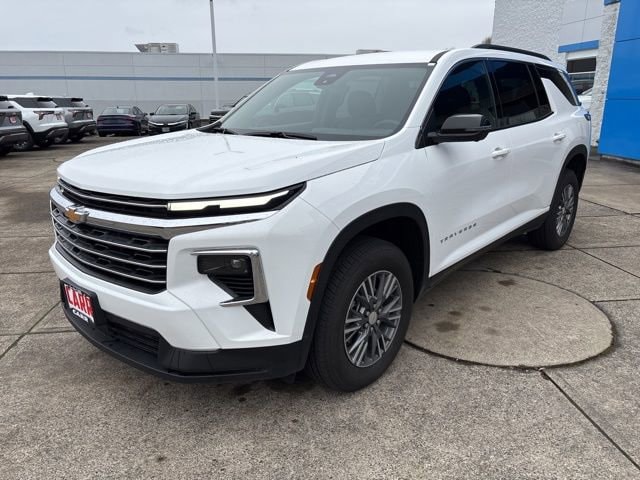 This 2026 Summit White Chevrolet Traverse LT AWD is well equipped and includes these features and benefits: Driver Confidence Package (HD Surround Vision, Key Card, Power Outlet, Rear Camera Mirror, Rear Pedestrian Alert, and Traffic Sign Recognition), Preferred Equipment Group 2LT, AWD, 3rd row seats: split-bench, 4-Way Manual Front Passenger Seat Adjuster, 4-Wheel Disc Brakes, 6 Speakers, 6-Speaker Audio System Feature, 8-Way Power Driver Seat Adjuster, ABS brakes, Air Conditioning, Alloy wheels, AM/FM radio: SiriusXM with 360L, Apple CarPlay/Android Auto, Auto High-beam Headlights, Automatic temperature control, Brake assist, Bumpers: body-color, Child-Seat-Sensing Airbag, Compass, Delay-off headlights, Driver door bin, Driver vanity mirror, Dual front impact airbags, Dual front side impact airbags, Electronic Stability Control, Emergency communication system: OnStar, Four wheel independent suspension, Front anti-roll bar, Front Bucket Seats, Front Center Armrest, Front dual zone A/C, Front reading lights, Fully automatic headlights, Heated door mirrors, Heated Driver and Front Passenger Seats, Heated front seats, Heated steering wheel, Illuminated entry, Low tire pressure warning, Navigation System, Occupant sensing airbag, Outside temperature display, Overhead airbag, Overhead console, Panic alarm, Passenger door bin, Passenger vanity mirror, Power door mirrors, Power driver seat, Power Liftgate, Power steering, Power windows, Premium Cloth Seat Trim, Radio data system, Radio: : Audio System w/17.7 Diagonal Display, Rear air conditioning, Rear anti-roll bar, Rear reading lights, Rear window defroster, Rear window wiper, Remote keyless entry, Security system, SiriusXM with 360L Trial Subscription, Speed control, Speed-sensing steering, Spoiler, Steering wheel mounted audio controls, Tachometer, Telescoping steering wheel, Tilt steering wheel, Traction control, Trip computer, Turn signal indicator mirrors, Variably intermittent wipers, Voltmeter, and Wheels: 18 Grazen Metallic Machined-Face Aluminum. Price includes: $1000 - Bonus Cash. Exp. 03/02/2026