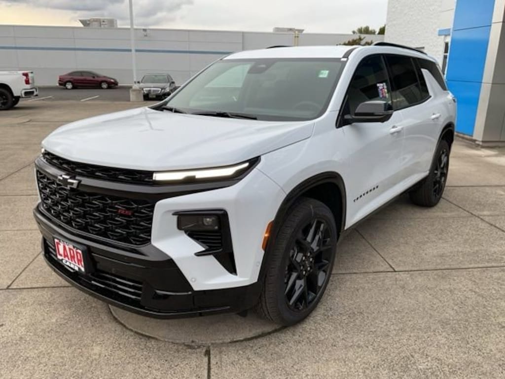 This 2026 Polar White Tricoat Chevrolet Traverse RS AWD is well equipped and includes these features and benefits: Preferred Equipment Group 2RS, AWD, 12 Speakers, 3rd row seats: split-bench, 4-Wheel Disc Brakes, 6-Way Power Front Passenger Seat Adjuster, 8-Way Power Driver Seat Adjuster, ABS brakes, Air Conditioning, Alloy wheels, AM/FM radio: SiriusXM with 360L, Apple CarPlay/Android Auto, Auto High-beam Headlights, Auto tilt-away steering wheel, Auto-dimming door mirrors, Automatic temperature control, Bose Premium 12-Speaker Audio System Feature, Brake assist, Bumpers: body-color, Child-Seat-Sensing Airbag, Compass, Delay-off headlights, Driver 4-Way Power Lumbar Seat Adjuster, Driver door bin, Driver vanity mirror, Dual front impact airbags, Dual front side impact airbags, Electronic Stability Control, Emergency communication system: OnStar, Exterior Parking Camera Rear, Four wheel independent suspension, Front anti-roll bar, Front Bucket Seats, Front Center Armrest, Front dual zone A/C, Front Passenger 4-Way Power Lumbar Seat Adjuster, Front reading lights, Fully automatic headlights, Garage door transmitter, Heated door mirrors, Heated Driver & Front Passenger Seats, Heated front seats, Heated rear seats, Heated steering wheel, Illuminated entry, Low tire pressure warning, Memory seat, Navigation System, Occupant sensing airbag, Outside temperature display, Overhead airbag, Overhead console, Panic alarm, Passenger door bin, Passenger vanity mirror, Perforated Leather-Appointed Seat Trim, Power door mirrors, Power driver seat, Power Liftgate, Power passenger seat, Power steering, Power windows, Radio data system, Radio: Audio System w/17.7 Diagonal Display, Rain sensing wipers, Rear air conditioning, Rear anti-roll bar, Rear reading lights, Rear window defroster, Rear window wiper, Remote keyless entry, Security system, SiriusXM w/360L Trial Subscription, Speed control, Speed-sensing steering, Spoiler, Sport steering wheel, Steering wheel memory, Steering wheel mounted audio controls, Tachometer, Telescoping steering wheel, Tilt steering wheel, Traction control, Trip computer, Turn signal indicator mirrors, Variably intermittent wipers, Ventilated Driver & Front Passenger Seats, Ventilated front seats, Voltmeter, and Wheels: 22 High Gloss Black Painted Aluminum.