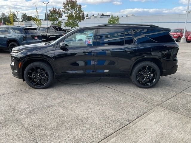 This 2026 Mosaic Black Metallic Chevrolet Traverse RS AWD is well equipped and includes these features and benefits: Preferred Equipment Group 2RS, AWD, 12 Speakers, 3rd row seats: split-bench, 4-Wheel Disc Brakes, 6-Way Power Front Passenger Seat Adjuster, 8-Way Power Driver Seat Adjuster, ABS brakes, Air Conditioning, Alloy wheels, AM/FM radio: SiriusXM with 360L, Apple CarPlay/Android Auto, Auto High-beam Headlights, Auto tilt-away steering wheel, Auto-dimming door mirrors, Automatic temperature control, Bose Premium 12-Speaker Audio System Feature, Brake assist, Bumpers: body-color, Child-Seat-Sensing Airbag, Compass, Delay-off headlights, Driver 4-Way Power Lumbar Seat Adjuster, Driver door bin, Driver vanity mirror, Dual front impact airbags, Dual front side impact airbags, Electronic Stability Control, Emergency communication system: OnStar, Exterior Parking Camera Rear, Four wheel independent suspension, Front anti-roll bar, Front Bucket Seats, Front Center Armrest, Front dual zone A/C, Front Passenger 4-Way Power Lumbar Seat Adjuster, Front reading lights, Fully automatic headlights, Garage door transmitter, Heated door mirrors, Heated front seats, Heated rear seats, Heated steering wheel, Illuminated entry, Low tire pressure warning, Memory seat, Navigation System, Occupant sensing airbag, Outside temperature display, Overhead airbag, Overhead console, Panic alarm, Passenger door bin, Passenger vanity mirror, Perforated Leather-Appointed Seat Trim, Power door mirrors, Power driver seat, Power Liftgate, Power passenger seat, Power steering, Power windows, Radio data system, Rain sensing wipers, Rear air conditioning, Rear anti-roll bar, Rear reading lights, Rear window defroster, Rear window wiper, Remote keyless entry, Security system, Speed control, Speed-sensing steering, Spoiler, Sport steering wheel, Steering wheel memory, Steering wheel mounted audio controls, Tachometer, Telescoping steering wheel, Tilt steering wheel, Traction control, Trip computer, Turn signal indicator mirrors, Variably intermittent wipers, Ventilated front seats, Voltmeter, and Wheels: 22 High Gloss Black Painted Aluminum.
