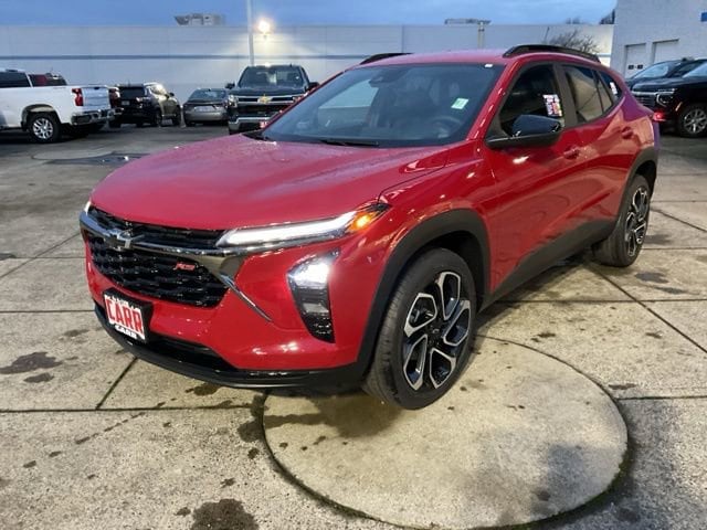 This 2026 Apex Red Chevrolet Trax 2RS FWD is well equipped and includes these features and benefits: 2-Way Adjustable Front Head Restraints, 2-Way Power Driver Lumbar Seat Adjuster, 3.50 Final Drive Axle Ratio, 4-Way Manual Front Passenger Seat Adjuster, 4-Wheel Disc Brakes, 6 Speakers, 6-Speaker Audio System Feature, 8-Way Power Driver Seat Adjuster, ABS brakes, Air Conditioning, Alloy wheels, AM/FM radio: SiriusXM, Auto High-beam Headlights, Automatic temperature control, Brake assist, Bumpers: body-color, Compass, Delay-off headlights, Driver door bin, Driver vanity mirror, Dual front impact airbags, Dual front side impact airbags, Electronic Stability Control, Emergency communication system: OnStar One Essentials, Evotex Seat Trim, Exterior Parking Camera Rear, Front anti-roll bar, Front Bucket Seats, Front Center Armrest, Front reading lights, Front wheel independent suspension, Fully automatic headlights, Heated door mirrors, Heated Driver and Front Passenger Seats, Heated front seats, Heated steering wheel, Illuminated entry, Leather steering wheel, Low tire pressure warning, Occupant sensing airbag, Outside temperature display, Overhead airbag, Overhead console, Panic alarm, Passenger door bin, Passenger vanity mirror, Power door mirrors, Power driver seat, Power steering, Power windows, Premium audio system: Chevrolet Infotainment 3, Radio data system, Radio: AM/FM Stereo Audio System, Rear window defroster, Rear window wiper, Remote keyless entry, Security system, SiriusXM Trial Subscription, Speed control, Split folding rear seat, Spoiler, Sport steering wheel, Steering wheel mounted audio controls, Tachometer, Telescoping steering wheel, Tilt steering wheel, Traction control, Trip computer, Variably intermittent wipers, Wheels: 19 Black-Painted Machined Aluminum, and Wireless Apple CarPlay/Wireless Android Auto.