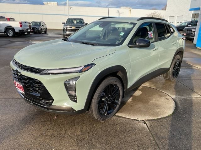 This 2026 Cacti Green Chevrolet Trax ACTIV FWD is well equipped and includes these features and benefits: 2-Way Adjustable Front Head Restraints, 2-Way Power Driver Lumbar Seat Adjuster, 3.50 Final Drive Axle Ratio, 4-Way Manual Front Passenger Seat Adjuster, 4-Wheel Disc Brakes, 6 Speakers, 6-Speaker Audio System Feature, 8-Way Power Driver Seat Adjuster, ABS brakes, Air Conditioning, Alloy wheels, AM/FM radio: SiriusXM, Auto High-beam Headlights, Automatic temperature control, Brake assist, Bumpers: body-color, Compass, Delay-off headlights, Driver door bin, Driver vanity mirror, Dual front impact airbags, Dual front side impact airbags, Electronic Stability Control, Emergency communication system: OnStar One Essentials, Evotex Seat Trim, Exterior Parking Camera Rear, Front anti-roll bar, Front Bucket Seats, Front Center Armrest, Front reading lights, Front wheel independent suspension, Fully automatic headlights, Heated door mirrors, Heated Driver and Front Passenger Seats, Heated front seats, Heated steering wheel, Illuminated entry, Leather steering wheel, Low tire pressure warning, Occupant sensing airbag, Outside temperature display, Overhead airbag, Overhead console, Panic alarm, Passenger door bin, Passenger vanity mirror, Power door mirrors, Power driver seat, Power steering, Power windows, Premium audio system: Chevrolet Infotainment 3, Radio data system, Radio: AM/FM Stereo Audio System, Rear window defroster, Rear window wiper, Remote keyless entry, Security system, SiriusXM Trial Subscription, Speed control, Split folding rear seat, Spoiler, Steering wheel mounted audio controls, Tachometer, Telescoping steering wheel, Tilt steering wheel, Traction control, Trip computer, Variably intermittent wipers, Wheels: 18 Black-Painted Aluminum, and Wireless Apple CarPlay/Wireless Android Auto.