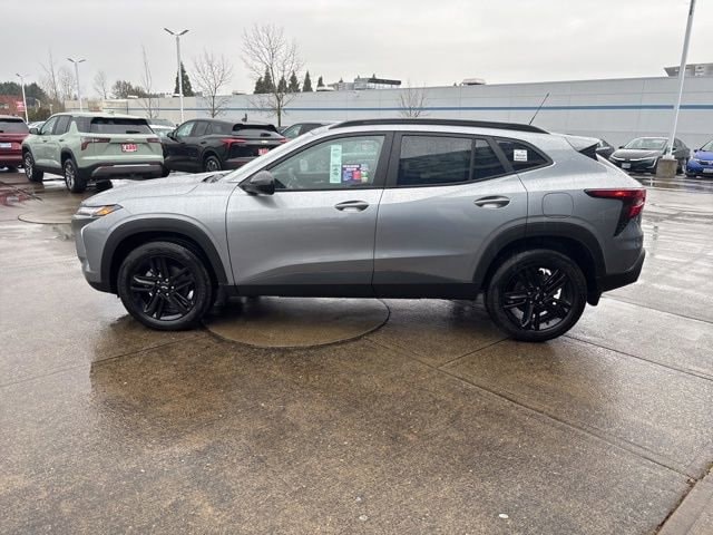 Car and Driver, January 2017. This 2026 Sterling Gray Metallic Chevrolet Trax ACTIV FWD is well equipped and includes these features and benefits: Driver Confidence Package (Adaptive Cruise Control, Lane Change Alert with Side Blind Zone Alert, Rear Cross Traffic Alert, and Rear Park Assist), License Plate Front Mounting Package, Preferred Equipment Group 1SA, 2-Way Adjustable Front Head Restraints, 2-Way Power Driver Lumbar Seat Adjuster, 3.50 Final Drive Axle Ratio, 4-Way Manual Front Passenger Seat Adjuster, 4-Wheel Disc Brakes, 6 Speakers, 6-Speaker Audio System Feature, 8-Way Power Driver Seat Adjuster, ABS brakes, Air Conditioning, Alloy wheels, AM/FM radio: SiriusXM, Auto High-beam Headlights, Automatic temperature control, Brake assist, Bumpers: body-color, Compass, Delay-off headlights, Driver door bin, Driver vanity mirror, Dual front impact airbags, Dual front side impact airbags, Electronic Stability Control, Emergency communication system: OnStar One Essentials, Evotex Seat Trim, Exterior Parking Camera Rear, Front and Rear Custom Molded Splash Guards, Front and Rear Jet Black All-Weather Floor Liners, Front anti-roll bar, Front Bucket Seats, Front Center Armrest, Front reading lights, Front wheel independent suspension, Fully automatic headlights, Heated door mirrors, Heated Driver and Front Passenger Seats, Heated front seats, Heated steering wheel, Illuminated entry, Leather steering wheel, Low tire pressure warning, Occupant sensing airbag, Outside temperature display, Overhead airbag, Overhead console, Panic alarm, Passenger door bin, Passenger vanity mirror, Power door mirrors, Power driver seat, Power steering, Power windows, Premium audio system: Chevrolet Infotainment 3, Radio data system, Radio: AM/FM Stereo Audio System, Rear window defroster, Rear window wiper, Remote keyless entry, Security system, SiriusXM Trial Subscription, Speed control, Split folding rear seat, Spoiler, Steering wheel mounted audio controls, Tachometer, Telescoping steering wheel, Tilt steering wheel, Traction control, Trip computer, Variably intermittent wipers, Wheels: 18 Black-Painted Aluminum, and Wireless Apple CarPlay/Wireless Android Auto. Price includes: $500 - Customer Cash. Exp. 04/30/2026