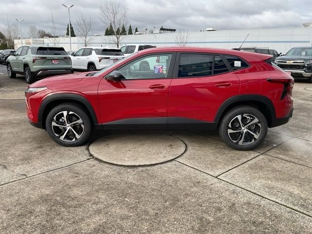 This 2026 Apex Red Chevrolet Trax 1RS FWD is well equipped and includes these features and benefits: Driver Confidence Package (Lane Change Alert with Side Blind Zone Alert, Rear Cross Traffic Alert, and Rear Park Assist), License Plate Front Mounting Package, Preferred Equipment Group 1RS, 2-Way Adjustable Front Head Restraints, 3.50 Final Drive Axle Ratio, 4 Speakers, 4-Speaker Audio System Feature, 4-Way Manual Front Passenger Seat Adjuster, 4-Wheel Disc Brakes, 6-Way Manual Driver Seat Adjuster, ABS brakes, Air Conditioning, Alloy wheels, AM/FM radio: SiriusXM, Auto High-beam Headlights, Brake assist, Bumpers: body-color, Cloth Seat Trim, Compass, Delay-off headlights, Driver door bin, Driver vanity mirror, Dual front impact airbags, Dual front side impact airbags, Electronic Stability Control, Emergency communication system: OnStar One Essentials, Exterior Parking Camera Rear, Front anti-roll bar, Front Bucket Seats, Front Center Armrest, Front reading lights, Front wheel independent suspension, Fully automatic headlights, Heated door mirrors, Heated Driver and Front Passenger Seats, Heated front seats, Heated steering wheel, Illuminated entry, Leather steering wheel, Low tire pressure warning, Occupant sensing airbag, Outside temperature display, Overhead airbag, Overhead console, Panic alarm, Passenger door bin, Passenger vanity mirror, Power door mirrors, Power steering, Power windows, Premium audio system: Chevrolet Infotainment 3, Radio data system, Radio: Chevrolet Infotainment 3 System with AM/FM, Rear window defroster, Rear window wiper, Remote keyless entry, Security system, SiriusXM Trial Subscription, Speed control, Split folding rear seat, Spoiler, Sport steering wheel, Steering wheel mounted audio controls, Tachometer, Telescoping steering wheel, Tilt steering wheel, Traction control, Trip computer, Variably intermittent wipers, Wheels: 18 Black-Painted Machined Aluminum, and Wireless Apple CarPlay/Wireless Android Auto.
