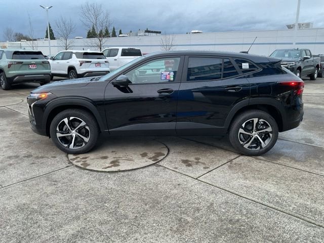 This 2026 Mosaic Black Metallic Chevrolet Trax 1RS FWD is well equipped and includes these features and benefits: Driver Confidence Package (Lane Change Alert with Side Blind Zone Alert, Rear Cross Traffic Alert, and Rear Park Assist), License Plate Front Mounting Package, Preferred Equipment Group 1RS, 2-Way Adjustable Front Head Restraints, 3.50 Final Drive Axle Ratio, 4 Speakers, 4-Speaker Audio System Feature, 4-Way Manual Front Passenger Seat Adjuster, 4-Wheel Disc Brakes, 6-Way Manual Driver Seat Adjuster, ABS brakes, Air Conditioning, Alloy wheels, AM/FM radio: SiriusXM, Auto High-beam Headlights, Brake assist, Bumpers: body-color, Cloth Seat Trim, Compass, Delay-off headlights, Driver door bin, Driver vanity mirror, Dual front impact airbags, Dual front side impact airbags, Electronic Stability Control, Emergency communication system: OnStar One Essentials, Exterior Parking Camera Rear, Front anti-roll bar, Front Bucket Seats, Front Center Armrest, Front reading lights, Front wheel independent suspension, Fully automatic headlights, Heated door mirrors, Heated Driver and Front Passenger Seats, Heated front seats, Heated steering wheel, Illuminated entry, Leather steering wheel, Low tire pressure warning, Occupant sensing airbag, Outside temperature display, Overhead airbag, Overhead console, Panic alarm, Passenger door bin, Passenger vanity mirror, Power door mirrors, Power steering, Power windows, Premium audio system: Chevrolet Infotainment 3, Radio data system, Radio: Chevrolet Infotainment 3 System with AM/FM, Rear window defroster, Rear window wiper, Remote keyless entry, Security system, SiriusXM Trial Subscription, Speed control, Split folding rear seat, Spoiler, Sport steering wheel, Steering wheel mounted audio controls, Tachometer, Telescoping steering wheel, Tilt steering wheel, Traction control, Trip computer, Variably intermittent wipers, Wheels: 18 Black-Painted Machined Aluminum, and Wireless Apple CarPlay/Wireless Android Auto.