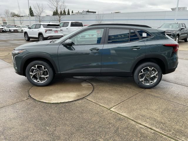 This 2026 Cypress Gray Chevrolet Trax LT FWD is well equipped and includes these features and benefits: Driver Confidence Package (Adaptive Cruise Control, Lane Change Alert with Side Blind Zone Alert, Rear Cross Traffic Alert, and Rear Park Assist), License Plate Front Mounting Package, LT Convenience Package (Front Doors Keyless Open, Heated Driver and Front Passenger Seats, Heated Power-Adjustable Outside Mirrors, Heated Steering Wheel, and Wrapped Steering Wheel), Preferred Equipment Group 1LT, 2-Way Adjustable Front Head Restraints, 3.50 Final Drive Axle Ratio, 4-Way Manual Front Passenger Seat Adjuster, 4-Wheel Disc Brakes, 6 Speakers, 6-Speaker Audio System Feature, 6-Way Manual Driver Seat Adjuster, ABS brakes, Air Conditioning, Alloy wheels, AM/FM radio: SiriusXM, Auto High-beam Headlights, Automatic temperature control, Brake assist, Bumpers: body-color, Cloth/Evotex Seat Trim, Compass, Delay-off headlights, Driver door bin, Driver vanity mirror, Dual front impact airbags, Dual front side impact airbags, Electronic Stability Control, Emergency communication system: OnStar One Essentials, Exterior Parking Camera Rear, Front anti-roll bar, Front Bucket Seats, Front Center Armrest, Front reading lights, Front wheel independent suspension, Fully automatic headlights, Illuminated entry, Low tire pressure warning, Occupant sensing airbag, Outside temperature display, Overhead airbag, Overhead console, Panic alarm, Passenger door bin, Passenger vanity mirror, Power door mirrors, Power steering, Power windows, Premium audio system: Chevrolet Infotainment 3, Radio data system, Radio: AM/FM Stereo Audio System, Rear window defroster, Rear window wiper, Remote keyless entry, Security system, SiriusXM Trial Subscription, Speed control, Split folding rear seat, Spoiler, Steering wheel mounted audio controls, Tachometer, Telescoping steering wheel, Tilt steering wheel, Traction control, Trip computer, Variably intermittent wipers, Wheels: 17 Inch Gray-Painted Machined Aluminum Alloy, and Wireless Apple CarPlay/Wireless Android Auto.