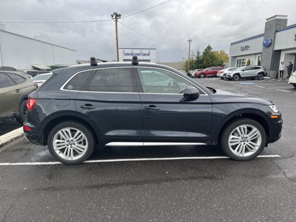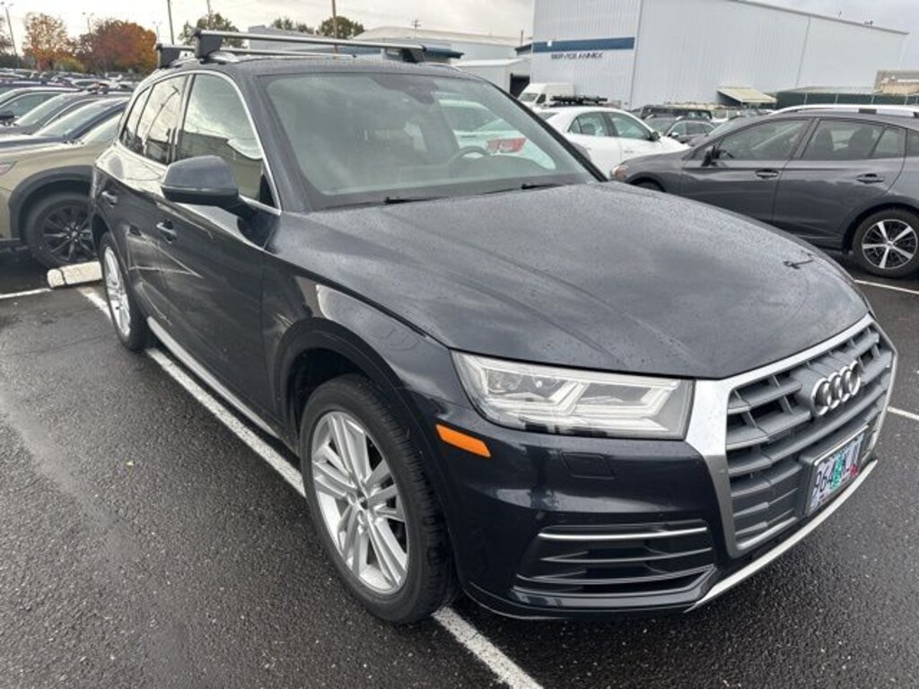 This 2018 Audi Q5 2.0T AWD is well equipped and includes these features and benefits: Leather, 10 Speakers, 4-Wheel Disc Brakes, 5.302 Axle Ratio, 8-Way Power Front Bucket Seats, ABS brakes, Air Conditioning, Alloy wheels, AM/FM radio: SiriusXM, Audi smartphone interface (Apple CarPlay/Android Auto), Auto-dimming door mirrors, Auto-dimming Rear-View mirror, Automatic temperature control, Brake assist, Bumpers: body-color, Compass, Delay-off headlights, Driver door bin, Driver vanity mirror, Dual front impact airbags, Dual front side impact airbags, DVD-Audio, Electronic Stability Control, Emergency communication system: Audi connect CARE, Exterior Parking Camera Rear, Four wheel independent suspension, Front anti-roll bar, Front Bucket Seats, Front Center Armrest, Front dual zone A/C, Front fog lights, Front reading lights, Garage door transmitter: HomeLink, Genuine wood console insert, Genuine wood dashboard insert, Genuine wood door panel insert, Heated door mirrors, High intensity discharge headlights: Xenon plus, Illuminated entry, Leather Seating Surfaces, Leather Shift Knob, Leather steering wheel, Low tire pressure warning, Memory seat, Navigation System, Occupant sensing airbag, Outside temperature display, Overhead airbag, Overhead console, Panic alarm, Passenger door bin, Passenger vanity mirror, Power door mirrors, Power driver seat, Power Liftgate, Power passenger seat, Power steering, Power windows, Radio data system, Radio: MMI Navigation Plus System, Rain sensing wipers, Rear air conditioning, Rear anti-roll bar, Rear fog lights, Rear reading lights, Rear seat center armrest, Rear window defroster, Rear window wiper, Remote keyless entry, Roof rack, Security system, Speed control, Speed-sensing steering, Speed-Sensitive Wipers, Split folding rear seat, Spoiler, Steering wheel mounted audio controls, Tachometer, Telescoping steering wheel, Tilt steering wheel, Traction control, Trip computer, Turn signal indicator mirrors, Variably intermittent wipers, and Wheels: 8" x 18" 5-Double-Spoke Dynamic Design. Leather.
