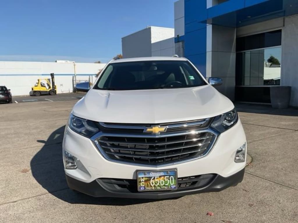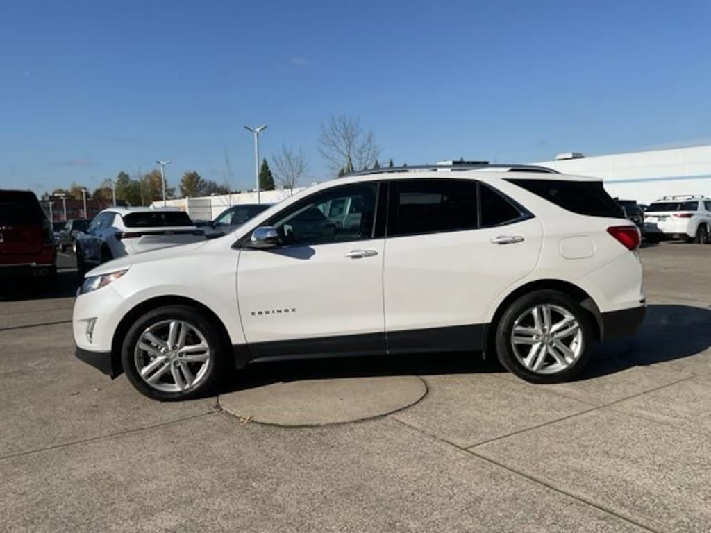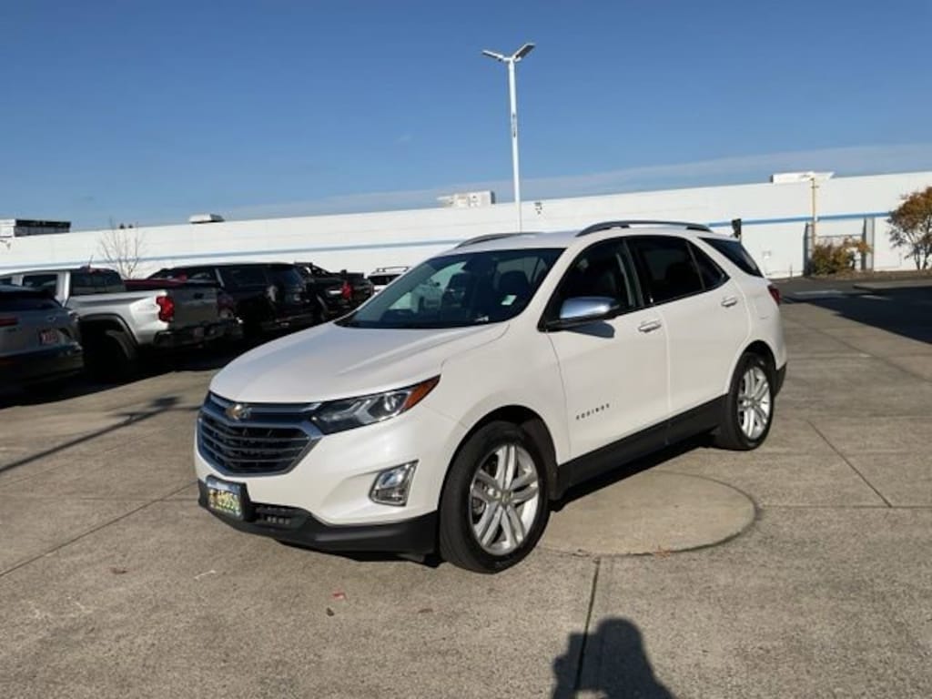 This 2019 Iridescent Pearl Tricoat Chevrolet Equinox Premier AWD is well equipped and includes these features and benefits: Preferred Equipment Group 2LZ (4-Wheel Antilock 4-Wheel Disc Brakes, Body-Color Trailer Hitch Close-Out Cover, Dual Stainless-Steel Exhaust w/Bright Tips, and Factory Installed Trailer Hitch), Trailering Equipment, AWD, 2 Rear USB Charging-Only Ports, 2 USB Data Ports, 2 USB Data Ports w/SD Card Reader, 2-Way Power Driver Lumbar Control Seat Adjuster, 3.17 Final Drive Axle Ratio, 4-Wheel Disc Brakes, 6 Speaker Audio System Feature, 6 Speakers, 8-Way Power Driver Seat Adjuster, ABS brakes, Air Conditioning, Alloy wheels, AM/FM radio: SiriusXM, Apple CarPlay/Android Auto, Auto-dimming door mirrors, Auto-dimming Rear-View mirror, Automatic temperature control, Bluetooth® For Phone, Brake assist, Bumpers: body-color, Compass, Delay-off headlights, Driver door bin, Driver vanity mirror, Dual front impact airbags, Dual front side impact airbags, Electronic Stability Control, Emergency communication system: OnStar and Chevrolet connected services capable, Four wheel independent suspension, Front anti-roll bar, Front Bucket Seats, Front Center Armrest, Front dual zone A/C, Front fog lights, Front reading lights, Fully automatic headlights, Garage door transmitter, Heated door mirrors, Heated Driver & Front Passenger Seats, Heated front seats, Illuminated entry, Leather Shift Knob, Low tire pressure warning, Memory seat, Occupant sensing airbag, Outside temperature display, Overhead airbag, Overhead console, Panic alarm, Passenger door bin, Passenger vanity mirror, Perforated Leather-Appointed Seat Trim, Power door mirrors, Power driver seat, Power Liftgate, Power steering, Power windows, Premium audio system: Chevrolet MyLink, Radio data system, Radio: Chevrolet Infotainment 3 Plus System, Rear anti-roll bar, Rear reading lights, Rear seat center armrest, Rear window defroster, Rear window wiper, Remote keyless entry, Roof rack: rails only, Security system, SiriusXM Radio, Speed control, Speed-sensing steering, Split folding rear seat, Spoiler, Steering wheel mounted audio controls, Tachometer, Telescoping steering wheel, Tilt steering wheel, Traction control, Trip computer, Turn signal indicator mirrors, Variably intermittent wipers, and Wheels: 19 Bright Machined.