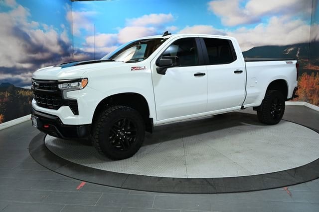 This 2023 Summit White Chevrolet Silverado 1500 LT Trail Boss 4WD is well equipped and includes these features and benefits: Convenience Package (10-Way Power Driver Seat w/Lumbar, 120-Volt Bed Mounted Power Outlet, 120-Volt Instrument Panel Power Outlet, Dual Rear USB Ports (Charge Only), Dual-Zone Automatic Climate Control, Electric Rear-Window Defogger, Heated Driver & Front Outboard Passenger Seats, Heated Steering Wheel, Keyless Open & Start, Remote Vehicle Starter System, Theft Deterrent System (Unauthorized Entry), and Wrapped Steering Wheel), Convenience Package II (Hitch Guidance w/Hitch View, Integrated Trailer Brake Controller, Power Sliding Rear Window w/Rear Defogger, Premium Bose 7-Speaker Sound System, Trailering App, and Universal Home Remote), Preferred Equipment Group 2LT (12.3 Multicolor Reconfigurable Digital Display, Auto-Locking Rear Differential, Bluetooth® For Phone, Chevrolet Connected Access Capable, Color-Keyed Carpeting Floor Covering, Compass, Deep-Tinted Glass, Electrical Steering Column Lock, Electronic Cruise Control, EZ Lift Power Lock & Release Tailgate, Front LED Fog Lamps, HD Rear Vision Camera, Heated Power-Adjustable Outside Mirrors, High Gloss Black Mirror Caps, Inside Rear-View Mirror w/Tilt, LED Cargo Area Lighting, OnStar & Chevrolet Connected Services Capable, Performance Red Recovery Hooks, Power Front Windows w/Driver Express Up/Down, Power Front Windows w/Passenger Express Down, Power Rear Windows w/Express Down, Rear 60/40 Folding Bench Seat (Folds Up), SiriusXM w/360L, Standard Tailgate, Steering Wheel Audio Controls, Wi-Fi Hot Spot Capable, and Wireless Phone Projection), Protection Package (Chevytec Spray-On Black Bedliner and Rear Wheelhouse Liners), Suspension Package (Hill Descent Control), Trailering Package (Hitch Guidance), 10-Speed Automatic, 4WD, Black Cloth, 2 USB Data Ports, 4-Wheel Disc Brakes, ABS brakes, Air Conditioning, Alloy wheels, AM/FM radio: SiriusXM with 360L, Apple CarPlay/Android Auto, Auto High-beam Headlights, Automatic Emergency Braking, Automatic temperature control, Brake assist, Delay-off headlights, Driver door bin, Driver vanity mirror, Dual Exhaust w/Polished Outlets, Dual front impact airbags, Dual front side impact airbags, Electronic Stability Control, Electronic Transmission Range Selector Shifter, Floor Mounted Center Console, Following Distance Indicator, Forward Collision Alert, Front anti-roll bar, Front Bucket Seats, Front Center Armrest w/Storage, Front dual zone A/C, Front fog lights, Front License Plate Kit, Front Pedestrian Braking, Front reading lights, Front wheel independent suspension, Fully automatic headlights, Heated door mirrors, Heated front seats, Heated steering wheel, Illuminated entry, IntelliBeam Automatic High Beam On/Off, Lane Keep Assist w/Lane Departure Warning, Low tire pressure warning, Molded Black Splash Guards (LPO), Not Equipped w/Steering Column Lock, Occupant sensing airbag, Outside temperature display, Overhead airbag, Overhead console, Panic alarm, Passenger door bin, Passenger vanity mirror, Power door mirrors, Power driver seat, Power steering, Power Tailgate, Power windows, Premium audio