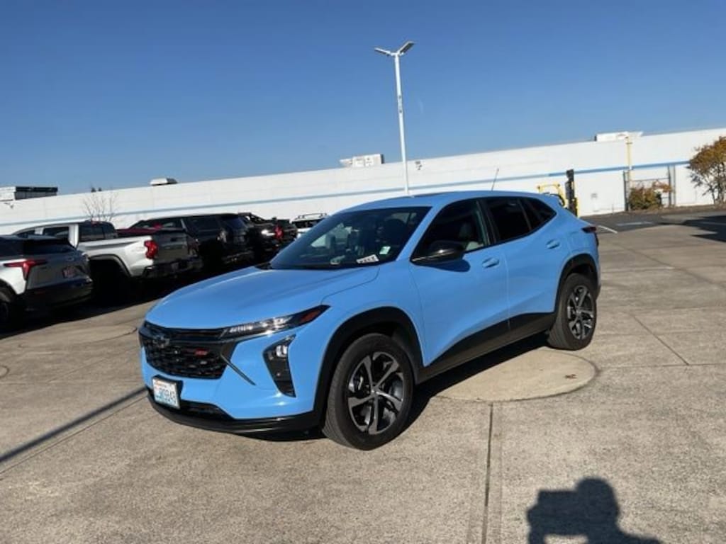 This 2024 Fountain Blue Chevrolet Trax 1RS FWD is well equipped and includes these features and benefits: Driver Confidence Package (Lane Change Alert w/Side Blind Zone Alert and Rear Cross-Traffic Alert), License Plate Front Mounting Package, Preferred Equipment Group 1RS, Sunroof Package (Power Sliding Glass Sunroof w/Manual Shade), 2-Way Adjustable Front Head Restraints, 3.50 Final Drive Axle Ratio, 4 Speakers, 4-Speaker Audio System Feature, 4-Way Manual Front Passenger Seat Adjuster, 4-Wheel Disc Brakes, 6-Way Manual Driver Seat Adjuster, ABS brakes, Air Conditioning, Alloy wheels, AM/FM radio: SiriusXM, Auto High-beam Headlights, Brake assist, Bumpers: body-color, Cloth Seat Trim, Compass, Delay-off headlights, Driver door bin, Driver vanity mirror, Dual front impact airbags, Dual front side impact airbags, Electronic Stability Control, Emergency communication system: OnStar and Chevrolet connected services capable, Exterior Parking Camera Rear, Front & Rear All-Weather Floor Liners (LPO), Front anti-roll bar, Front Bucket Seats, Front Center Armrest, Front reading lights, Front wheel independent suspension, Fully automatic headlights, Heated door mirrors, Heated Driver & Front Passenger Seats, Heated front seats, Heated steering wheel, Illuminated entry, Jet Black Cargo Liner (LPO), Low tire pressure warning, Occupant sensing airbag, Outside temperature display, Overhead airbag, Overhead console, Panic alarm, Passenger door bin, Passenger vanity mirror, Power door mirrors, Power steering, Power windows, Premium audio system: Chevrolet Infotainment 3, Radio data system, Radio: Chevrolet Infotainment 3 System w/AM/FM, Rear Park Assist (DISC), Rear window defroster, Rear window wiper, Remote keyless entry, Security system, SiriusXM, Speed control, Split folding rear seat, Spoiler, Sport steering wheel, Steering wheel mounted audio controls, Tachometer, Telescoping steering wheel, Tilt steering wheel, Traction control, Trip computer, Variably intermittent wipers, and Wheels: 18 Black-Painted Machined Aluminum.