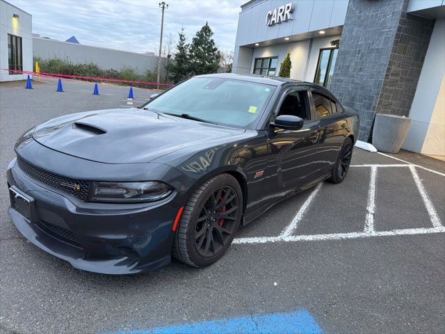 This 2018 Maximum Steel Metallic Clearcoat Dodge Charger R/T Scat Pack RWD is well equipped and includes these features and benefits: Driver Confidence Group, Dynamics Package (Anti-Lock 4-Wheel Disc 6 Piston Brakes and Wheels: 20" x 9.5" Low-Gloss Black Forged), Quick Order Package 21W R/T Scat Pack, Technology Group, Black Artificial Leather, 1-Yr SiriusXM Guardian Trial, 4-Wheel Disc Brakes, 5-Year SiriusXM Traffic Service, 5-Year SiriusXM Travel Link Service, 6 Speakers, 8.4" Touchscreen Display, ABS brakes, Air Conditioning, Alloy wheels, AM/FM radio: SiriusXM, Anti-whiplash front head restraints, Apple CarPlay, Apple CarPlay/Android Auto, Auto-dimming Rear-View mirror, Automatic temperature control, Black Painted Roof, Brake assist, Brake Calipers - Red, Bumpers: body-color, Compass, Delay-off headlights, Driver door bin, Driver vanity mirror, Dual front impact airbags, Dual front side impact airbags, Electronic Stability Control, Emergency communication system: SiriusXM Guardian, For Details, Visit DriveUconnect.com, Four wheel independent suspension, Front anti-roll bar, Front Bucket Seats, Front Center Armrest, Front dual zone A/C, Front fog lights, Front reading lights, Fully automatic headlights, Garage door transmitter: HomeLink, Google Android Auto, GPS Antenna Input, GPS Navigation, HD Radio, Illuminated entry, Integrated Center Stack Radio, Integrated Voice Command w/Bluetooth, Knee airbag, Leather Shift Knob, Low tire pressure warning, Media Hub (2 USB, AUX), Occupant sensing airbag, Outside temperature display, Overhead airbag, Overhead console, Panic alarm, ParkView Rear Back-Up Camera, Passenger door bin, Passenger vanity mirror, Power door mirrors, Power driver seat, Power Driver/Passenger 4-Way Lumbar Adjust, Power Front Driver/Passenger Seats, Power passenger seat, Power steering, Power Sunroof, Power windows, Radio data system, Radio: Uconnect 4C Nav w/8.4" Display, Radio: Uconnect 4C w/8.4" Display, Rear anti-roll bar, Rear reading lights, Rear seat center armrest, Rear window defroster, Remote keyless entry, Rhombi 2-Pc Wheel Center Cap, Scat Pack Logo Cloth Seat, Security system, SiriusXM Satellite Radio, SiriusXM Traffic Plus, SiriusXM Travel Link, Speed control, Speed-Sensitive Wipers, Split folding rear seat, Spoiler, Sport steering wheel, Steering wheel mounted audio controls, Tachometer, Telescoping steering wheel, Tilt steering wheel, Traction control, Trip computer, USB Host Flip, Variably intermittent wipers, and Wheels: 20" x 9.0" Alum Machined Face/Satin BlacK. Black Artificial Leather.