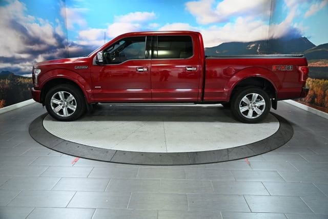This 2015 Ruby Red Metallic Ford F-150 Platinum 4WD is well equipped and includes these features and benefits: 4WD, 10 Speakers, 20 Polished Aluminum Wheels, 4-Wheel Disc Brakes, 4x4 FX4 Off-Road Decal, ABS brakes, Active Cruise Control, Active Park Assist, Adaptive Cruise Control & Collision Warning, Adjustable pedals, Air Conditioning, Alloy wheels, AM/FM radio: SiriusXM, Auto High-beam Headlights, Auto tilt-away steering wheel, Auto-dimming door mirrors, Auto-dimming Rear-View mirror, Automatic temperature control, Brake assist, CD player, Class IV Trailer Hitch Receiver, Compass, Delay-off headlights, Driver door bin, Driver vanity mirror, Dual front impact airbags, Dual front side impact airbags, Electronic Locking w/3.31 Axle Ratio, Electronic Stability Control, Extended Range 36 Gallon Fuel Tank, Exterior Parking Camera Rear, Front anti-roll bar, Front Bucket Seats, Front Center Armrest, Front dual zone A/C, Front fog lights, Front License Plate Bracket, Front reading lights, Front wheel independent suspension, Fully automatic headlights, Garage door transmitter, Genuine wood door panel insert, Heated door mirrors, Heated front seats, Heated rear seats, Heated steering wheel, Illuminated entry, Integrated Trailer Brake Controller, Lane-Keeping System, Low tire pressure warning, Memory seat, Occupant sensing airbag, Outside temperature display, Overhead airbag, Overhead console, Panic alarm, Passenger door bin, Passenger vanity mirror, Pedal memory, Power door mirrors, Power driver seat, Power passenger seat, Power steering, Power windows, Premium audio system: Sony, Radio data system, Radio: Sony Single CD w/HD & SiriusXM Satellite, Rear Parking Sensors, Rear reading lights, Rear seat center armrest, Rear step bumper, Rear window defroster, Remote keyless entry, Security system, Speed control, Speed-sensing steering, Split folding rear seat, Spray-In Bedliner (Pre-Installed), Steering wheel memory, Steering wheel mounted audio controls, Tachometer, Tailgate Step w/Tailgate Lift Assist, Telescoping steering wheel, Tilt steering wheel, Traction control, Trip computer, Turn signal indicator mirrors, Twin Panel Moonroof, Variably intermittent wipers, and Ventilated front seats.