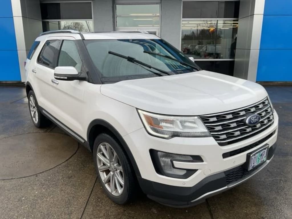 This 2017 White Platinum Clearcoat Metallic Ford Explorer Limited 4WD is well equipped and includes these features and benefits: Equipment Group 300A, 4WD, 12 Speakers, 20 Premium Painted Aluminum Wheels, 3.65 Axle Ratio, 3rd row seats: split-bench, 4-Wheel Disc Brakes, ABS brakes, Adjustable pedals, Air Conditioning, Alloy wheels, AM/FM radio: SiriusXM, Auto tilt-away steering wheel, Auto-dimming Rear-View mirror, Automatic temperature control, Brake assist, Bumpers: body-color, CD player, Compass, Delay-off headlights, Driver door bin, Driver vanity mirror, Dual front impact airbags, Dual front side impact airbags, Electronic Stability Control, Emergency communication system: SYNC 3 911 Assist, Exterior Parking Camera Rear, Four wheel independent suspension, Front anti-roll bar, Front Bucket Seats, Front Center Armrest, Front dual zone A/C, Front fog lights, Front License Plate Bracket, Front reading lights, Fully automatic headlights, Garage door transmitter, Heated door mirrors, Heated front seats, Heated rear seats, Heated steering wheel, Illuminated entry, Knee airbag, Leather steering wheel, Low tire pressure warning, Memory seat, Navigation System, Occupant sensing airbag, Outside temperature display, Overhead airbag, Overhead console, Panic alarm, Passenger door bin, Passenger vanity mirror, Pedal memory, Perforated Leather Heated/Cooled Bucket Seats, Power door mirrors, Power driver seat, Power Liftgate, Power passenger seat, Power steering, Power windows, Premium audio system: Sony, Radio data system, Radio: Sony Audio System w/Single-CD/MP3-Capable, Rear air conditioning, Rear anti-roll bar, Rear reading lights, Rear seat center armrest, Rear window defroster, Rear window wiper, Remote keyless entry, Roof rack: rails only, Security system, Speed control, Speed-sensing steering, Speed-Sensitive Wipers, Split folding rear seat, Spoiler, Steering wheel memory, Steering wheel mounted audio controls, SYNC 3 Communications & Entertainment System, Tachometer, Telescoping steering wheel, Tilt steering wheel, Traction control, Trip computer, Turn signal indicator mirrors, Twin Panel Moonroof, Variably intermittent wipers, and Ventilated front seats.