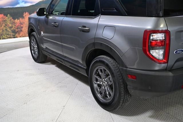 This 2022 Carbonized Gray Metallic Ford Bronco Sport Big Bend 4WD is well equipped and includes these features and benefits: Class II Trailer Tow Package w/Trailer Sway Control, Convenience Package (Front Driver & Passenger Seatback Zipper Pockets, Heated Front Bucket Seats, Intelligent Access (Lock/Unlock), Leather-Wrapped Steering Wheel, LED Fog Lamps, Rear Parking Sensors, Universal Garage Door Opener (UGDO), and Wireless Charging Pad), Equipment Group 200A, 3.80 Axle Ratio, 4-Wheel Disc Brakes, 4G LTE Wi-Fi Hotspot Credit, 6 Speakers, ABS brakes, Air Conditioning, Alloy wheels, AM/FM radio: SiriusXM, AM/FM Stereo, Auto High-beam Headlights, Automatic temperature control, Brake assist, Compass, Delay-off headlights, Driver door bin, Driver vanity mirror, Dual front impact airbags, Dual front side impact airbags, Electronic Stability Control, Emergency communication system: SYNC 3 911 Assist, Four wheel independent suspension, Front anti-roll bar, Front Bucket Seats, Front Center Armrest, Front reading lights, Fully automatic headlights, Heated door mirrors, Illuminated entry, Knee airbag, Low tire pressure warning, Occupant sensing airbag, Outside temperature display, Overhead airbag, Overhead console, Panic alarm, Passenger door bin, Passenger vanity mirror, Power door mirrors, Power steering, Power windows, Radio data system, Rear anti-roll bar, Rear reading lights, Rear seat center armrest, Rear window defroster, Rear window wiper, Remote keyless entry, Roof rack: rails only, Rubberized Second Row Seat Backs, Security system, SiriusXM Radio, Speed control, Speed-sensing steering, Speed-Sensitive Wipers, Split folding rear seat, Steering wheel mounted audio controls, SYNC 3 Communications & Entertainment System, SYNC 3/Apple CarPlay/Android Auto, Tachometer, Telescoping steering wheel, Tilt steering wheel, Traction control, Trip computer, Unique Cloth Front Bucket Seats, Variably intermittent wipers, and Wheels: 17 Carbonized Gray-Painted Aluminum.