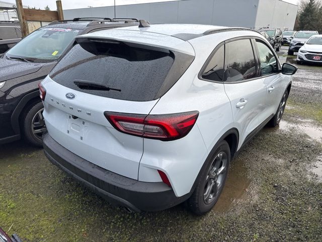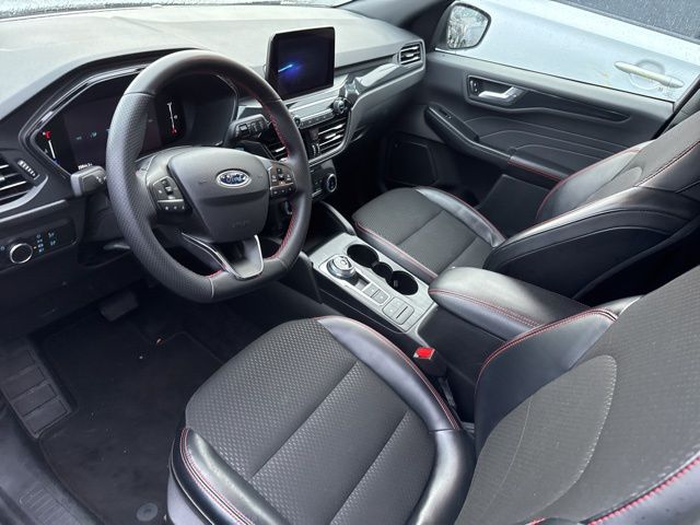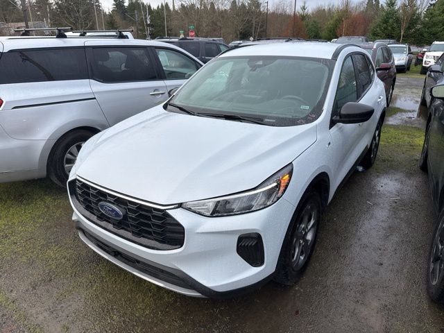 This 2025 Silver Metallic Ford Escape ST-Line FWD is well equipped and includes these features and benefits: Equipment Group 300A, 3.81 Axle Ratio, 4-Wheel Disc Brakes, 6 Speakers, ABS brakes, Air Conditioning, Alloy wheels, AM/FM radio: SiriusXM, AM/FM Stereo, Auto High-beam Headlights, Automatic temperature control, Brake assist, Bumpers: body-color, Compass, Delay-off headlights, Driver door bin, Driver vanity mirror, Dual front impact airbags, Dual front side impact airbags, Electronic Stability Control, Emergency communication system: SYNC 4 911 Assist, FordPass Connect, Four wheel independent suspension, Front anti-roll bar, Front Bucket Seats, Front Center Armrest, Front dual zone A/C, Front reading lights, Fully automatic headlights, Illuminated entry, Internet access capable: FordPass Connect 4G, Knee airbag, Low tire pressure warning, Occupant sensing airbag, Outside temperature display, Overhead airbag, Overhead console, Panic alarm, Passenger door bin, Passenger vanity mirror, Power door mirrors, Power driver seat, Power steering, Power windows, Radio data system, Rear anti-roll bar, Rear reading lights, Rear seat center armrest, Rear window defroster, Rear window wiper, Remote keyless entry, Speed control, Speed-sensing steering, Speed-Sensitive Wipers, Split folding rear seat, Spoiler, Sport steering wheel, Steering wheel mounted audio controls, SYNC 4, Tachometer, Telescoping steering wheel, Tilt steering wheel, Traction control, Trip computer, Variably intermittent wipers, Vinyl/Cloth Front Sport Contour Bucket Seats, and Wheels: 18" Rock Metallic Painted Aluminum. No CARR payments for 4 months, Sign and Drive sales event!, CARR Cares Advantage up to $3100 in ownership savings, ST-Line, Equipment Group 300A.