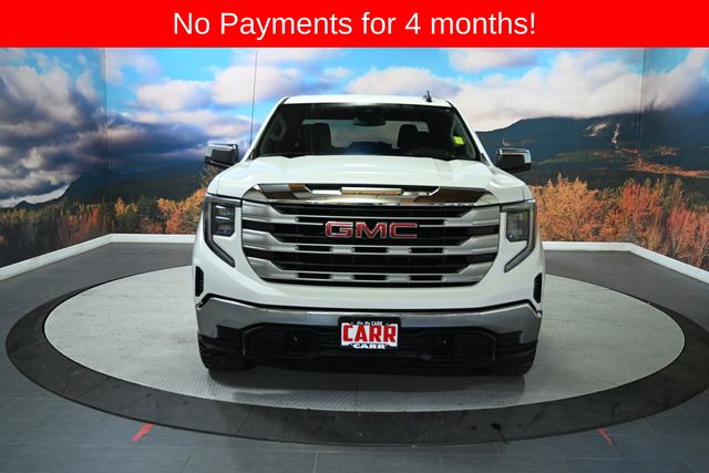 This 2022 White GMC Sierra 1500 SLE 4WD is well equipped and includes these features and benefits: Remote Start Package (Electric Rear-Window Defogger, Remote Vehicle Starter System, and Theft Deterrent System (Unauthorized Entry)), SLE Convenience Package (10-Way Power Driver Seat Adjuster w/Lumbar, Dual-Zone Automatic Climate Control, Heated Driver & Front Outboard Passenger Seating, Heated Steering Wheel, LED Cargo Area Lighting, and Manual Tilt-Wheel & Telescoping Steering Column), SLE Value Package (Auto-Locking Rear Differential), Trailering Package (Hitch Guidance), Standard Suspension Package, 10-Speed Automatic, 4WD, White Cloth, 120-Volt Bed Mounted Power Outlet, 2 Charge/Data USB Ports, 2 Type-C Charge-Only Rear USB Ports, 220 Amp Alternator, 3.42 Rear Axle Ratio, 4-Way Manual Passenger Seat Adjuster, 4-Wheel Disc Brakes, 6 Speakers, 6-Speaker Audio System Feature, ABS brakes, Air Conditioning, Alloy wheels, AM/FM radio: SiriusXM with 360L, Apple CarPlay/Android Auto, Auto High-beam Headlights, Automatic Emergency Braking, Automatic temperature control, Brake assist, Buckle to Drive, Bumpers: chrome, Chrome Header w/Medium Silver Grille Insert Bars, Cloth Seat Trim, Color-Keyed Carpeting Floor Covering, Compass, Deep-Tinted Glass, Delay-off headlights, Driver door bin, Driver vanity mirror, Dual front impact airbags, Dual front side impact airbags, Electrical Steering Column Lock, Electronic Stability Control, Emergency communication system: OnStar and GMC Connected Services capable, Exterior Parking Camera Rear, Following Distance Indicator, Forward Collision Alert, Front 40/20/40 Split-Bench Seat, Front anti-roll bar, Front Center Armrest w/Storage, Front dual zone A/C, Front Frame-Mounted Black Recovery Hooks, Front Pedestrian Braking, Front reading lights, Front wheel independent suspension, Fully automatic headlights, GMC Connected Access Capable, HD Rear Vision Camera, Heated door mirrors, Heated front seats, Heated steering wheel, Illuminated entry, IntelliBeam Automatic High Beam On/Off, Keyless Open & Start, Lane Keep Assist w/Lane Departure Warning, Low tire pressure warning, Occupant sensing airbag, OnStar & GMC Connected Services Capable, Outside temperature display, Overhead airbag, Overhead console, Panic alarm, Passenger door bin, Passenger vanity mirror, Power Door Locks, Power door mirrors, Power driver seat, Power Front Windows w/Driver Express Up/Down, Power Front Windows w/Passenger Express Down, Power Rear Windows w/Express Down, Power steering, Power windows, Premium audio system: GMC Infotainment System, Push Button Start, Radio data system, Radio: Premium GMC Infotainment Audio System, Rear reading lights, Rear step bumper, Rear window defroster, Remote keyless entry, Security system, SiriusXM w/360L, Speed control, Speed-sensing steering, Split folding rear seat, Spray-On Pickup Bed Liner w/GMC Logo, Steering Wheel Audio Controls, Steering wheel mounted audio controls, Tachometer, Telescoping steering wheel, Tilt steering wheel, Traction control, Trip computer, Variably intermittent wipers, Voltmeter, Wi-Fi Hotspot Capable, and Wireless Phone Projection. No CARR payments for 4 months, Sign and Drive sales event!, CARR Cares Advantage up to $3100 in ownership savings, Life Time Powertrain Warranty, 20" Black Machined Aftermarket Wheels, Oversized Off Road Tires, 10-Speed Automatic, 4WD, White Cloth, 10-Way Power Driver Seat Adjuster w/Lumbar, Auto-Locking Rear Differential, Dual-Zone Automatic Climate Control, Electric Rear-Window Defogger, Heated Driver & Front Outboard Passenger Seating, Heated Steering Wheel, Hitch Guidance, LED Cargo Area Lighting, Manual Tilt-Wheel & Telescoping Steering Column, Remote Start