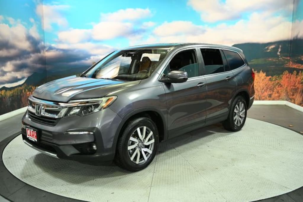 This 2019 Modern Steel Metallic Honda Pilot EX-L AWD is well equipped and includes these features and benefits: AWD, Power Liftgate, Power moonroof, 18" Machine-Finished Alloy Wheels, 3rd row seats: split-bench, 4-Wheel Disc Brakes, 4.25 Axle Ratio, 7 Speakers, A/V remote: CabinControl, ABS brakes, Air Conditioning, Alloy wheels, AM/FM radio: SiriusXM, Apple CarPlay/Android Auto, Auto High-beam Headlights, Auto-dimming Rear-View mirror, Automatic temperature control, Blind Spot Information (BSI) System warning, Brake assist, Bumpers: body-color, Delay-off headlights, Driver door bin, Driver vanity mirror, Dual front impact airbags, Dual front side impact airbags, Electronic Stability Control, Emergency communication system: HondaLink Assist, Exterior Parking Camera Rear, Forward collision: Collision Mitigation Braking System (CMBS) + FCW mitigation, Four wheel independent suspension, Front anti-roll bar, Front Bucket Seats, Front Center Armrest, Front dual zone A/C, Front fog lights, Front reading lights, Fully automatic headlights, Garage door transmitter: HomeLink, Heated door mirrors, Heated Front Bucket Seats, Heated front seats, Illuminated entry, Lane departure: Lane Keeping Assist System (LKAS) active, Leather Shift Knob, Leather-Trimmed Seats, Low tire pressure warning, Memory seat, Occupant sensing airbag, Outside temperature display, Overhead airbag, Overhead console, Panic alarm, Passenger door bin, Passenger vanity mirror, Power door mirrors, Power driver seat, Power passenger seat, Power steering, Power windows, Radio data system, Radio: AM/FM Audio System, Rear air conditioning, Rear anti-roll bar, Rear reading lights, Rear seat center armrest, Rear window defroster, Rear window wiper, Reclining 3rd row seat, Remote keyless entry, Security system, Speed control, Speed-sensing steering, Speed-Sensitive Wipers, Split folding rear seat, Spoiler, Steering wheel mounted audio controls, Tachometer, Telescoping steering wheel, Tilt steering wheel, Traction control, Trip computer, Turn signal indicator mirrors, and Variably intermittent wipers. No CARR payments for 4 months, Sign and Drive sales event!, CARR Cares Advantage up to $3100 in ownership savings, AWD, AWD, Power Liftgate, Power moonroof.