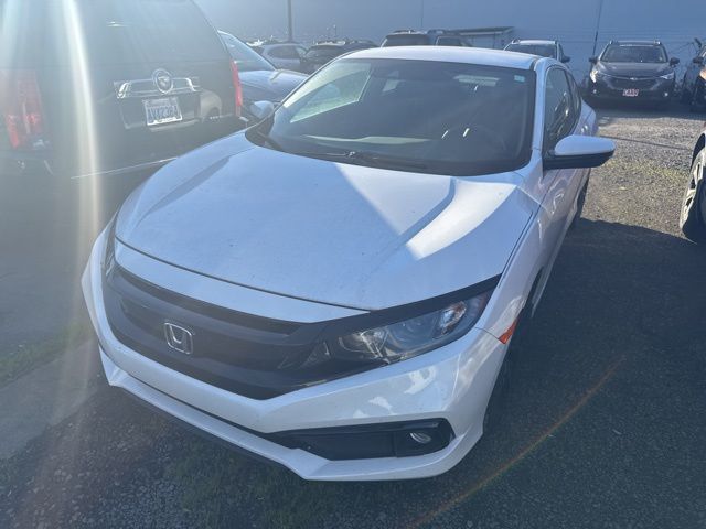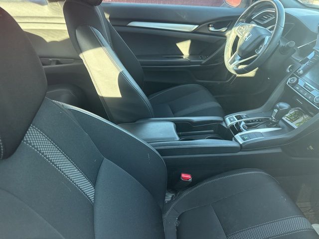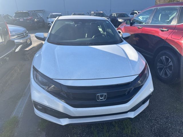 This 2020 White Honda Civic Sport FWD is well equipped and includes these features and benefits: Black Cloth, 4-Wheel Disc Brakes, 8 Speakers, ABS brakes, Adaptive Cruise Control: Adaptive Cruise Control (ACC) with Low-Speed Follow, Air Conditioning, Alloy wheels, AM/FM radio, Apple CarPlay/Android Auto, Auto High-beam Headlights, Automatic temperature control, Brake assist, Bumpers: body-color, Cloth Seat Trim, Delay-off headlights, Driver door bin, Driver vanity mirror, Dual front impact airbags, Dual front side impact airbags, Electronic Stability Control, Emergency communication system: HondaLink, Exterior Parking Camera Rear, Forward collision: Collision Mitigation Braking System (CMBS) + FCW mitigation, Four wheel independent suspension, Front anti-roll bar, Front Bucket Seats, Front Center Armrest, Front fog lights, Front reading lights, Fully automatic headlights, Illuminated entry, Lane departure: Lane Keeping Assist System (LKAS) active, Leather Shift Knob, Low tire pressure warning, Occupant sensing airbag, Outside temperature display, Overhead airbag, Panic alarm, Passenger door bin, Passenger vanity mirror, Power door mirrors, Power steering, Power windows, Radio data system, Radio: 180-Watt AM/FM Audio System, Rear anti-roll bar, Rear window defroster, Remote keyless entry, Security system, Speed control, Speed-sensing steering, Split folding rear seat, Steering wheel mounted audio controls, Tachometer, Telescoping steering wheel, Tilt steering wheel, Traction control, Trip computer, and Wheels: 18" Alloy w/Gloss Black Inserts. Black Cloth.