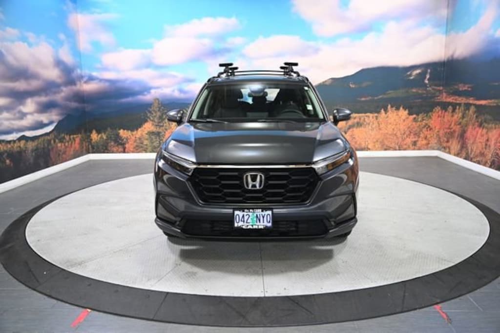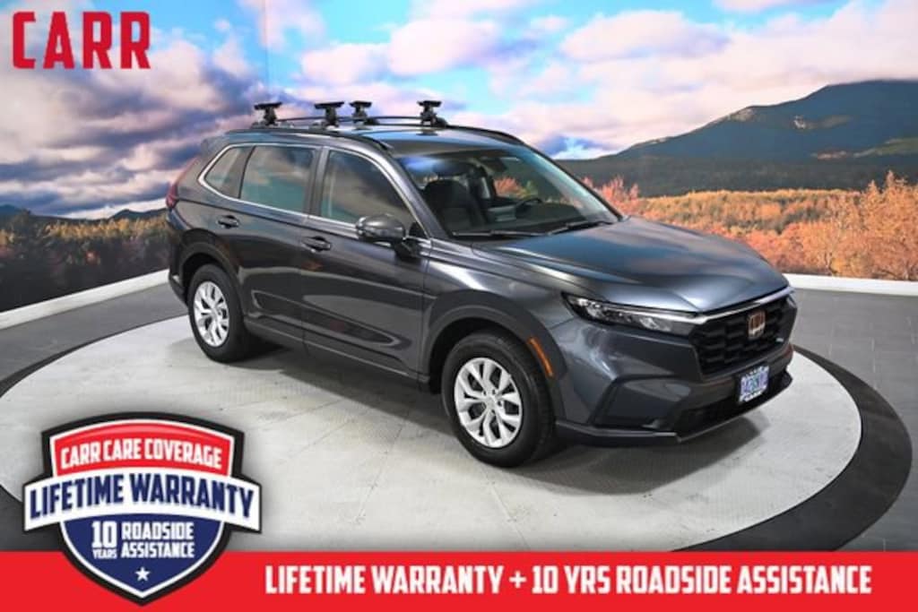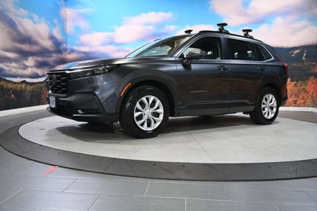 This 2024 Urban Gray Pearl Honda CR-V LX AWD is well equipped and includes these features and benefits: AWD, 4 Speakers, 4-Wheel Disc Brakes, 5.64 Axle Ratio, ABS brakes, Adaptive Cruise Control: Adaptive Cruise Control (ACC) with Low-Speed Follow, Air Conditioning, Apple CarPlay/Android Auto, Auto High-beam Headlights, Automatic temperature control, Brake assist, Bumpers: body-color, Cloth Seat Trim, Compass, Delay-off headlights, Driver door bin, Driver vanity mirror, Dual front impact airbags, Dual front side impact airbags, Electronic Stability Control, Exterior Parking Camera Rear, Four wheel independent suspension, Front anti-roll bar, Front Bucket Seats, Front Center Armrest, Front reading lights, Fully automatic headlights, Illuminated entry, Knee airbag, Low tire pressure warning, Occupant sensing airbag, Outside temperature display, Overhead airbag, Overhead console, Panic alarm, Passenger door bin, Passenger vanity mirror, Power door mirrors, Power steering, Power windows, Radio data system, Radio: 160-Watt AM/FM Audio System, Rear anti-roll bar, Rear reading lights, Rear seat center armrest, Rear side impact airbag, Rear window defroster, Rear window wiper, Remote keyless entry, Roof Rails, Security system, Speed control, Speed-sensing steering, Speed-Sensitive Wipers, Split folding rear seat, Spoiler, Steering wheel mounted audio controls, Tachometer, Tailgate Spoiler, Telescoping steering wheel, Tilt steering wheel, Traction control, Trailer Hitch, Trailer Hitch Harness, Trip computer, Turn signal indicator mirrors, Variably intermittent wipers, and Wheels: 17 Steel w/Covers.