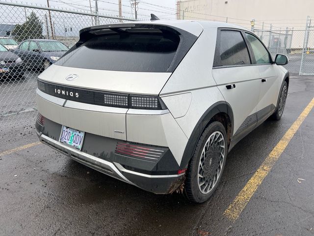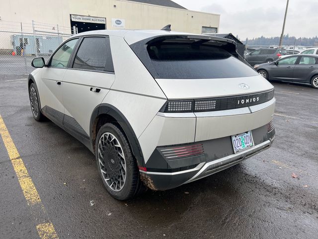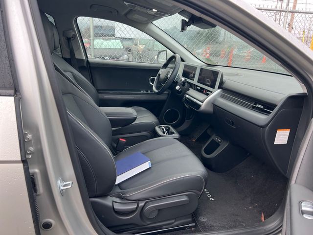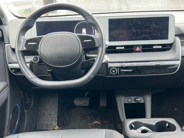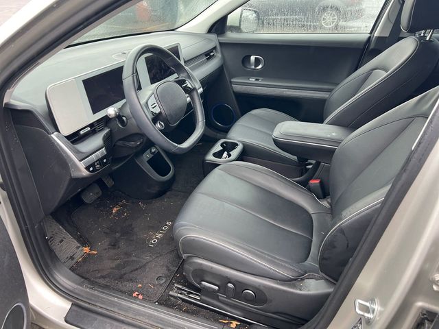 This 2023 Gravity Gold (Matte Gold) Hyundai IONIQ 5 SEL AWD is well equipped and includes these features and benefits: Option Group 01, 4-Wheel Disc Brakes, 4.706 Axle Ratio, 6 Speakers, ABS brakes, Air Conditioning, Alloy wheels, AM/FM radio: SiriusXM, Apple CarPlay & Android Auto, Auto High-beam Headlights, Auto-dimming Rear-View mirror, Automatic temperature control, Bodyside moldings, Brake assist, Bumpers: body-color, Carpeted Floor Mats, Delay-off headlights, Driver door bin, Driver vanity mirror, Dual front impact airbags, Dual front side impact airbags, Electronic Stability Control, Emergency communication system: Blue Link Connected Car Service (3-year complimentary subscription), First Aid Kit, Four wheel independent suspension, Front anti-roll bar, Front Bucket Seats, Front Center Armrest w/Storage, Front dual zone A/C, Front reading lights, Fully automatic headlights, Garage door transmitter: HomeLink, H-Tex Leatherette Seating Surfaces, harman/kardon® Speakers, Heated door mirrors, Heated Front Bucket Seats, Heated front seats, Heated steering wheel, Illuminated entry, Leather steering wheel, Low tire pressure warning, Navigation System, Occupant sensing airbag, Outside temperature display, Overhead airbag, Overhead console, Panic alarm, Passenger door bin, Passenger vanity mirror, Power door mirrors, Power driver seat, Power Liftgate, Power steering, Power windows, Radio: AM/FM/SiriusXM/HD Display Audio System, Rear anti-roll bar, Rear reading lights, Rear seat center armrest, Rear window defroster, Remote keyless entry, Security system, Speed control, Speed-sensing steering, Split folding rear seat, Spoiler, Steering wheel mounted audio controls, Telescoping steering wheel, Tilt steering wheel, Tow Hitch, Traction control, Trip computer, Turn signal indicator mirrors, Up Seatback Cargo Mat, Variably intermittent wipers, and Wheels: 19" x 7.5J Aero Alloy.