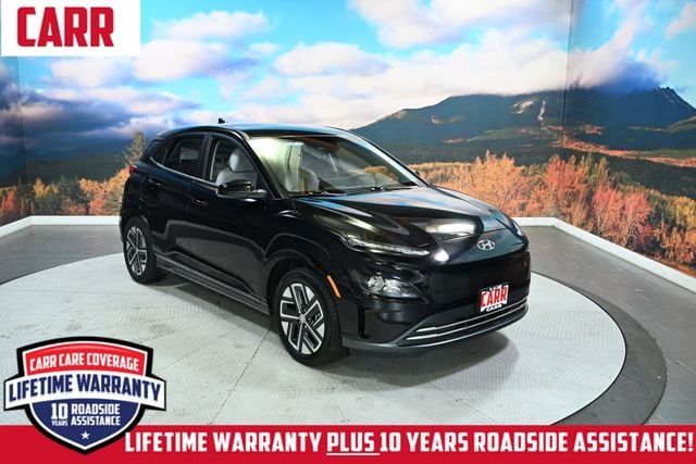 This 2023 Ultra Black Hyundai Kona Electric SE FWD is well equipped and includes these features and benefits: Option Group 01, Cargo Package (Cargo Blocks, Cargo Tray, and First Aid Kit), 17" Unique Alloy Wheels, 4-Wheel Disc Brakes, 6 Speakers, 7.981 Axle Ratio, ABS brakes, Air Conditioning, Alloy wheels, AM/FM radio: SiriusXM, Apple CarPlay & Android Auto, Automatic temperature control, Brake assist, Bumpers: body-color, Carpeted Floor Mats, Cloth Seat Trim, Delay-off headlights, Driver door bin, Driver vanity mirror, Dual front impact airbags, Dual front side impact airbags, Electronic Stability Control, Emergency communication system: Blue Link Connected Car Service (3-year complimentary subscription), Front anti-roll bar, Front Bucket Seats, Front Center Armrest w/Storage, Front wheel independent suspension, Fully automatic headlights, Heated door mirrors, Heated Front Bucket Seats, Heated front seats, Illuminated entry, Low tire pressure warning, Occupant sensing airbag, Outside temperature display, Overhead airbag, Overhead console, Panic alarm, Passenger door bin, Passenger vanity mirror, Power door mirrors, Power driver seat, Power steering, Power windows, Radio: AM/FM/HD Radio/SiriusXM Audio System, Rear seat center armrest, Rear window defroster, Rear window wiper, Remote keyless entry, Security system, Speed control, Speed-sensing steering, Split folding rear seat, Spoiler, Steering wheel mounted audio controls, Telescoping steering wheel, Tilt steering wheel, Traction control, Trip computer, Turn signal indicator mirrors, Variably intermittent wipers, and Wheel Locks. Lifetime powertrain warranty, No CARR payments for 4 months, Sign and Drive sales event!, CARR Cares Advantage up to $3100 in ownership savings, Ask us about our lifetime powertrain warranty!, One owner, Option Group 01.