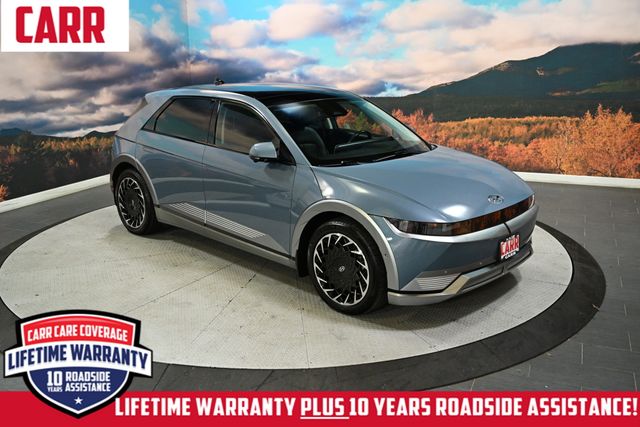 This 2024 Lucid Blue Hyundai IONIQ 5 Limited AWD is well equipped and includes these features and benefits: Option Group 01, 4-Wheel Disc Brakes, 4.71 Axle Ratio, 8 Speakers, ABS brakes, Active Cruise Control, Air Conditioning, Alloy wheels, AM/FM radio: SiriusXM, Apple CarPlay & Android Auto, Auto High-beam Headlights, Auto-dimming Rear-View mirror, Automatic temperature control, Bodyside moldings, Brake assist, Bumpers: body-color, Carpeted Floor Mats, Charging Port Applique, Delay-off headlights, Driver door bin, Driver vanity mirror, Dual front impact airbags, Dual front side impact airbags, Electronic Stability Control, Emergency communication system: Bluelink+, Four wheel independent suspension, Front anti-roll bar, Front Bucket Seats, Front Center Armrest w/Storage, Front dual zone A/C, Front reading lights, Fully automatic headlights, Garage door transmitter: HomeLink, H-Tex Artifical Leather Seating Surfaces, Heads-Up Display, Heated & Ventilated Front Bucket Seats, Heated door mirrors, Heated front seats, Heated steering wheel, Illuminated entry, Leather steering wheel, Low tire pressure warning, Memory seat, Mudguards, Navigation System, Occupant sensing airbag, Outside temperature display, Overhead airbag, Overhead console, Panic alarm, Passenger door bin, Passenger vanity mirror, Power door mirrors, Power driver seat, Power Liftgate, Power passenger seat, Power steering, Power windows, Radio: AM/FM/SiriusXM/HD Display Audio System, Rain sensing wipers, Rear anti-roll bar, Rear reading lights, Rear seat center armrest, Rear side impact airbag, Rear window defroster, Remote keyless entry, Security system, Speed control, Speed-sensing steering, Split folding rear seat, Spoiler, Steering wheel mounted audio controls, Telescoping steering wheel, Tilt steering wheel, Traction control, Trip computer, Turn signal indicator mirrors, Variably intermittent wipers, Ventilated front seats, Wheel Locks, and Wheels: 20" x 8.5J Alloy. Panoramic Moon Roof, Lifetime powertrain warranty, No CARR payments for 4 months, Sign and Drive sales event!, CARR Cares Advantage up to $3100 in ownership savings, Ask us about our lifetime powertrain warranty!, Option Group 01.
