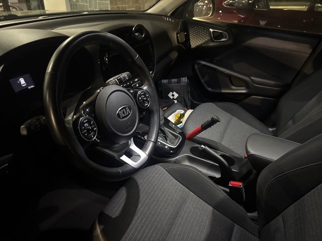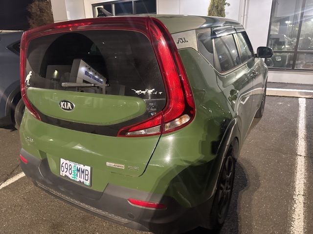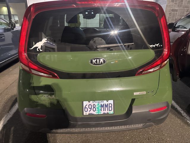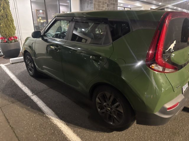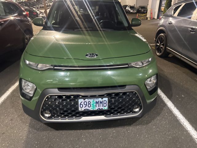 This 2021 Undercover Green Kia Soul EX FWD is well equipped and includes these features and benefits: 4-Wheel Disc Brakes, 6 Speakers, ABS brakes, Air Conditioning, Alloy wheels, AM/FM radio: SiriusXM, Apple CarPlay & Android Auto, Automatic temperature control, Brake assist, Bumpers: body-color, Cargo Tray, Carpeted Floor Mats, Delay-off headlights, Driver door bin, Driver vanity mirror, Dual front impact airbags, Dual front side impact airbags, Electronic Stability Control, Emergency communication system: UVO link, Exterior Parking Camera Rear, Front anti-roll bar, Front Bucket Seats, Front Center Armrest, Front dual zone A/C, Front fog lights, Front reading lights, Front wheel independent suspension, Fully automatic headlights, Heated door mirrors, Heated Front Bucket Seats, Heated front seats, Leather Shift Knob, Leather steering wheel, Low tire pressure warning, Navigation System, Occupant sensing airbag, Outside temperature display, Overhead airbag, Overhead console, Passenger door bin, Passenger vanity mirror, Power door mirrors, Power driver seat, Power moonroof, Power steering, Power windows, Premium Cloth Seat Trim, Radio: AM/FM/MP3 Audio System, Rear Bumper Applique, Rear seat center armrest, Rear window defroster, Rear window wiper, Remote keyless entry, Speed control, Speed-sensing steering, Split folding rear seat, Steering wheel mounted audio controls, Tachometer, Telescoping steering wheel, Tilt steering wheel, Traction control, Trip computer, Variably intermittent wipers, and Wheels: 17" x 6.5 Alloy.