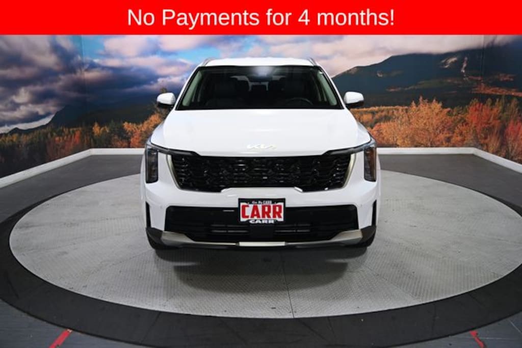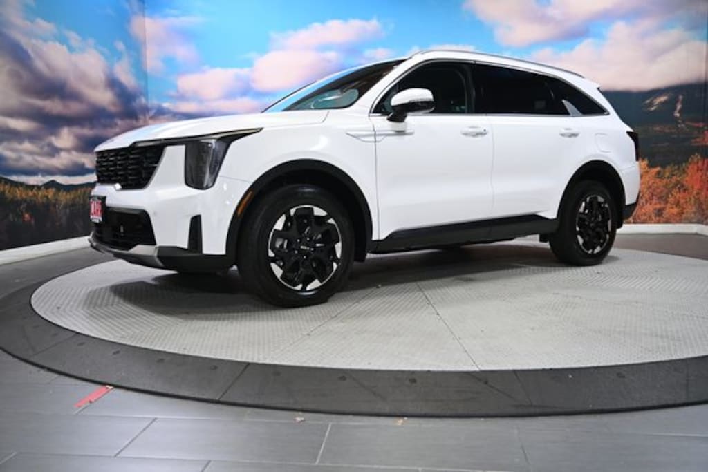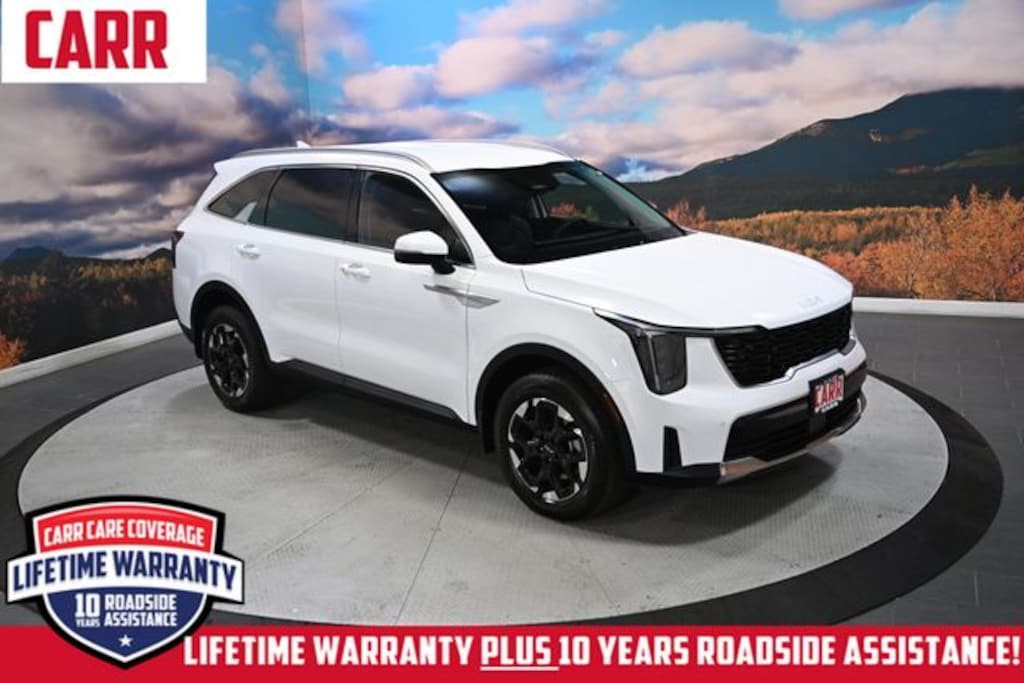 This 2025 Glacial White Pearl Kia Sorento S AWD is well equipped and includes these features and benefits: AWD, Navigation System, Rear seat center armrest, 3rd row seats: split-bench, 4-Wheel Disc Brakes, 6 Speakers, ABS brakes, Active Cruise Control, Air Conditioning, Alloy wheels, AM/FM radio: SiriusXM, Apple CarPlay & Android Auto, Auto High-beam Headlights, Automatic temperature control, Brake assist, Bumpers: body-color, Delay-off headlights, Driver door bin, Driver vanity mirror, Dual front impact airbags, Dual front side impact airbags, Electronic Stability Control, Emergency communication system: 911 Connect, Exterior Parking Camera Rear, Four wheel independent suspension, Front anti-roll bar, Front Bucket Seats, Front Center Armrest, Front dual zone A/C, Front reading lights, Fully automatic headlights, Heated door mirrors, Heated Front Bucket Seats, Heated front seats, Illuminated entry, Knee airbag, Leather Shift Knob, Leather steering wheel, Low tire pressure warning, Mudguards, Occupant sensing airbag, Outside temperature display, Overhead airbag, Overhead console, Panic alarm, Passenger door bin, Passenger vanity mirror, Power door mirrors, Power driver seat, Power steering, Power windows, Radio data system, Radio: AM/FM Standard Sound System, Rear anti-roll bar, Rear reading lights, Rear side impact airbag, Rear window defroster, Rear window wiper, Remote keyless entry, Security system, Speed control, Speed-sensing steering, Split folding rear seat, Spoiler, Steering wheel mounted audio controls, SynTex Artificial Leather Seat Trim, Tachometer, Telescoping steering wheel, Tilt steering wheel, Traction control, Trip computer, Turn signal indicator mirrors, Variably intermittent wipers, and Wheels: 18" Gloss Black Alloy. Lifetime powertrain warranty, No CARR payments for 4 months, Sign and Drive sales event!, CARR Cares Advantage up to $3100 in ownership savings, AWD, Navigation System, Rear seat center armrest.
