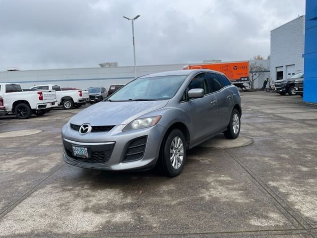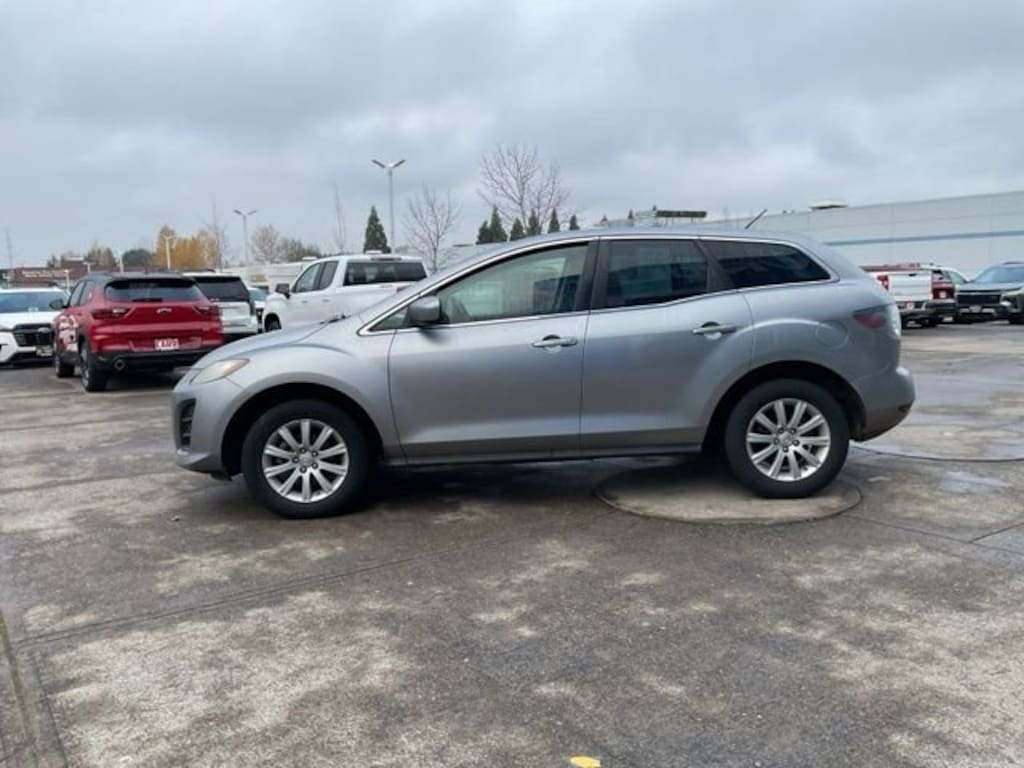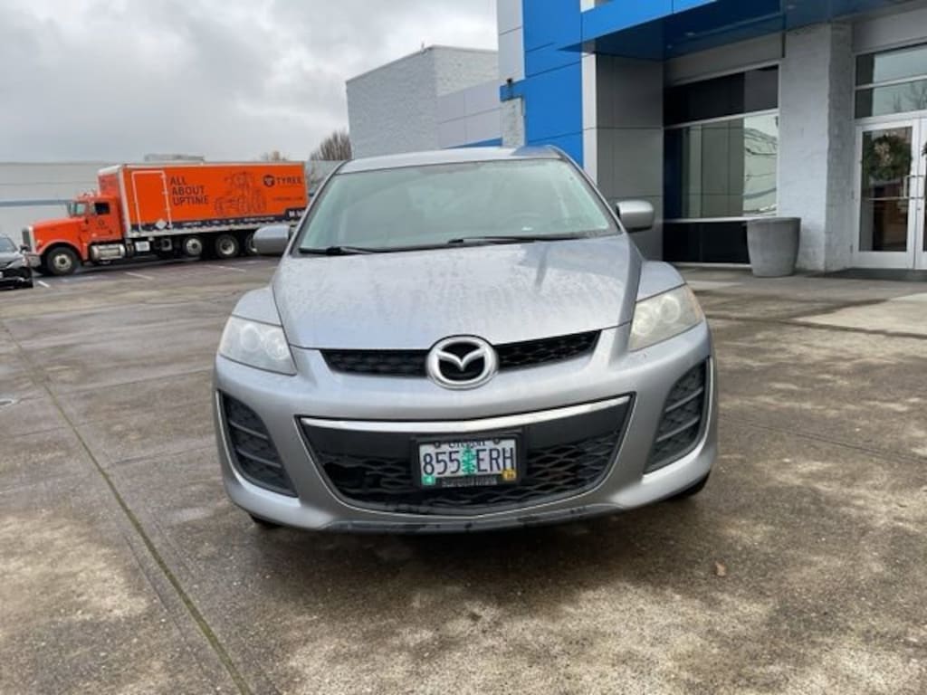 This 2010 Liquid Silver Metallic Mazda CX-7 i Sport FWD is well equipped and includes these features and benefits: 17 x 7.0J Aluminum Alloy Wheels, 3.863 Axle Ratio, 4 Speakers, 4-Wheel Disc Brakes, ABS brakes, Air Conditioning, Alloy wheels, AM/FM/CD Audio System w/MP3 Capability, Anti-whiplash front head restraints, Brake assist, Bumpers: body-color, CD player, Cloth-Trimmed Seat Upholstery, Driver door bin, Driver vanity mirror, Dual front impact airbags, Dual front side impact airbags, Electronic Stability Control, Exterior Parking Camera Rear, Four wheel independent suspension, Front anti-roll bar, Front Bucket Seats, Front Center Armrest, Front reading lights, Illuminated entry, Leather steering wheel, Low tire pressure warning, Occupant sensing airbag, Outside temperature display, Overhead airbag, Panic alarm, Passenger door bin, Passenger vanity mirror, Power door mirrors, Power steering, Power windows, Rear anti-roll bar, Rear seat center armrest, Rear window defroster, Rear window wiper, Reclining Front Bucket Seats, Remote keyless entry, Speed control, Speed-sensing steering, Split folding rear seat, Spoiler, Steering wheel mounted audio controls, Tachometer, Telescoping steering wheel, Tilt steering wheel, Traction control, Trip computer, and Variably intermittent wipers.
