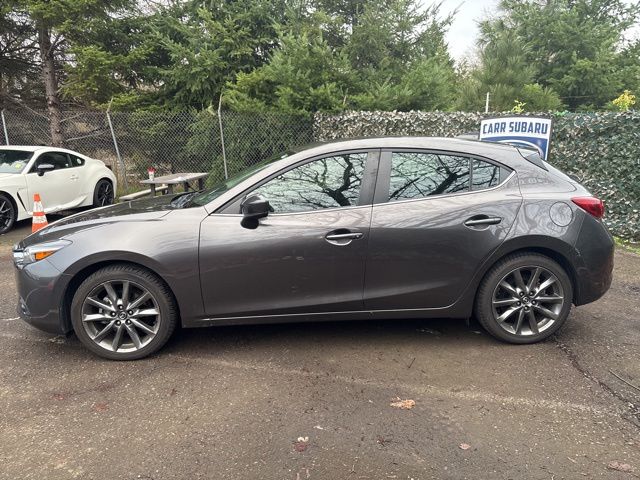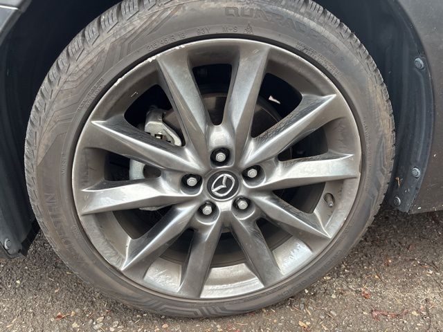 This 2018 Machine Gray Metallic Mazda Mazda3 Grand Touring FWD is well equipped and includes these features and benefits: 4-Wheel Disc Brakes, 9 Speakers, ABS brakes, Air Conditioning, Alloy wheels, AM/FM radio: SiriusXM, Automatic temperature control, Bose 9 Speaker Surround Sound Audio System, Brake assist, Bumpers: body-color, Driver door bin, Driver vanity mirror, Dual front impact airbags, Dual front side impact airbags, Electronic Stability Control, Emergency communication system: MAZDA CONNECT, Exterior Parking Camera Rear, Four wheel independent suspension, Front anti-roll bar, Front Bucket Seats, Front Center Armrest, Front dual zone A/C, Front fog lights, Front reading lights, Fully automatic headlights, Heated door mirrors, Heated front seats, Illuminated entry, Leather Shift Knob, Low tire pressure warning, Machine Gray Metallic Paint Charge, Occupant sensing airbag, Outside temperature display, Overhead airbag, Overhead console, Panic alarm, Passenger door bin, Passenger vanity mirror, Perforated Leather Seat Trim, Power door mirrors, Power driver seat, Power moonroof, Power steering, Power windows, Radio data system, Radio: AM/FM/HD Audio System, Rain sensing wipers, Rear anti-roll bar, Rear seat center armrest, Rear window defroster, Rear window wiper, Remote keyless entry, Speed control, Speed-sensing steering, Split folding rear seat, Spoiler, Steering wheel mounted audio controls, Tachometer, Telescoping steering wheel, Tilt steering wheel, Traction control, Trip computer, Turn signal indicator mirrors, Variable Heated Reclining Front Bucket Seats, Variably intermittent wipers, and Wheels: 18" x 7.0J" Dark Silver Finish Alloy.