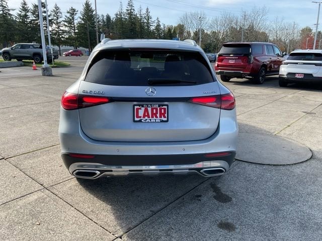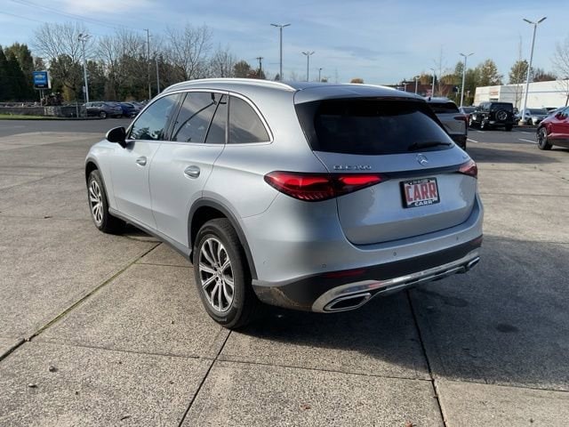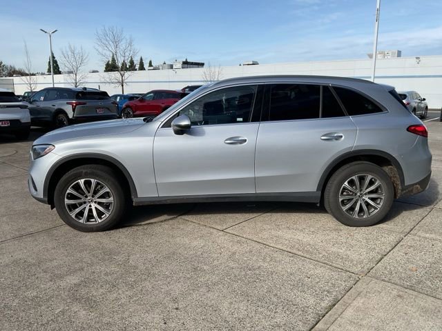 This 2024 Silver Mercedes-Benz GLC 300 AWD is well equipped and includes these features and benefits: 11.9 Center Touchscreen Display, 16-Way Power Front Seats w/Memory/Lumbar/Thigh Ext, 18 10-Spoke Wheels, 3 USB C-Ports, 4-Way Power Lumbar Support, 4-Wheel Disc Brakes, 8 Speakers, ABS brakes, Air Conditioning, Alloy wheels, AM/FM radio: SiriusXM, Apple CarPlay®/Android Auto®, Auto High-beam Headlights, Auto tilt-away steering wheel, Auto-dimming Rear-View mirror, Automatic temperature control, Brake assist, Bumpers: body-color, Child-Seat-Sensing Airbag, Compass, Delay-off headlights, Driver door bin, Driver vanity mirror, Dual front impact airbags, Dual front side impact airbags, Electronic Stability Control, Emergency communication system: eCall Emergency System, Exterior Parking Camera Rear, Four wheel independent suspension, Front anti-roll bar, Front Bucket Seats, Front Center Armrest, Front dual zone A/C, Front reading lights, Fully automatic headlights, Garage door transmitter: HomeLink, Genuine wood dashboard insert, HD Radio, Head restraints memory, Heated door mirrors, Heated Front Bucket Seats, Heated front seats, Illuminated entry, Inductive Wireless Charging, Knee airbag, Leather steering wheel, Low tire pressure warning, MB-Tex Upholstery, MBUX Intelligent Vehicle Assistant (Hey Mercedes), Memory seat, Occupant sensing airbag, Outside temperature display, Overhead airbag, Overhead console, Panic alarm, Passenger door bin, Passenger vanity mirror, Power adjustable front head restraints, Power door mirrors, Power driver seat, Power Liftgate, Power passenger seat, Power steering, Power windows, Premium audio system: MBUX, Radio data system, Radio: AM/FM/HD, Rain sensing wipers, Rear anti-roll bar, Rear fog lights, Rear reading lights, Rear seat center armrest, Rear window defroster, Rear window wiper, Remote keyless entry, Security system, SiriusXM Satellite Radio, Speed control, Speed-sensing steering, Split folding rear seat, Spoiler, Steering wheel memory, Steering wheel mounted audio controls, Tachometer, TBD Axle Ratio, Telescoping steering wheel, Tilt steering wheel, Traction control, Trip computer, Turn signal indicator mirrors, Variably intermittent wipers, Wireless Android Auto®, and Wireless Apple CarPlay®.