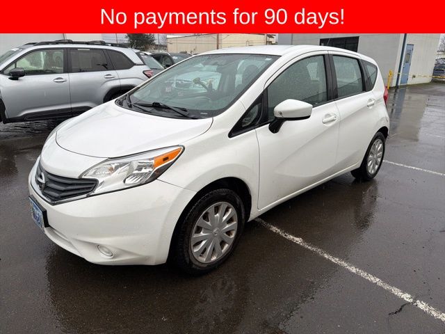 This 2016 White Nissan Versa Note S Plus FWD is well equipped and includes these features and benefits: 15" Steel Wheels w/Full Wheel Covers, 4 Speakers, ABS brakes, Air Conditioning, AM/FM radio, AM/FM/CD Audio System, Brake assist, Bumpers: body-color, CD player, Cloth Seat Trim, Driver door bin, Dual front impact airbags, Dual front side impact airbags, Electronic Stability Control, Front anti-roll bar, Front Bucket Seats, Front reading lights, Front wheel independent suspension, Low tire pressure warning, Occupant sensing airbag, Overhead airbag, Passenger door bin, Power door mirrors, Power steering, Radio data system, Rear anti-roll bar, Rear window defroster, Rear window wiper, Speed-sensing steering, Split folding rear seat, Steering wheel mounted audio controls, Tachometer, Tilt steering wheel, Traction control, and Trip computer. No CARR payments for 90 days, Sign and Drive sales event!.