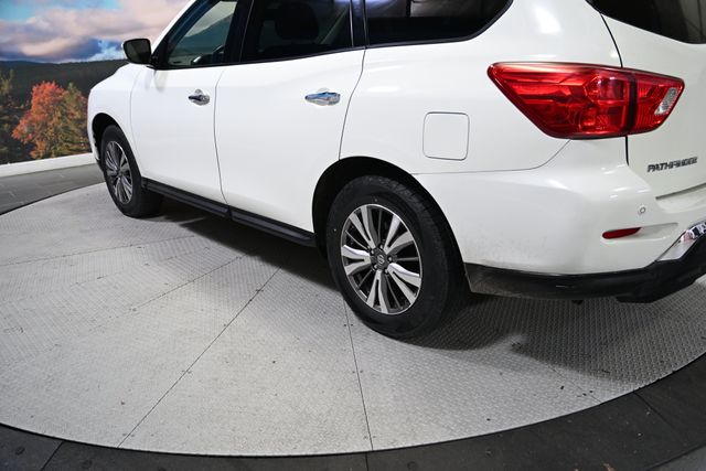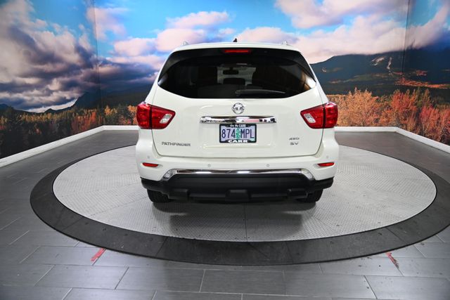 This 2018 Glacier White (Fleet) Nissan Pathfinder SV 4WD is well equipped and includes these features and benefits: 4WD, 3rd row seats: bench, 4-Wheel Disc Brakes, 5.25 Axle Ratio, 6 Speakers, ABS brakes, Activation Disclaimer, Air Conditioning, Alloy wheels, AM/FM radio: SiriusXM, Auto-dimming Rear-View mirror, Automatic temperature control, Blind Spot Warning, Brake assist, Bumpers: body-color, CD player, Cloth Seating Surfaces, Compass, Delay-off headlights, Driver door bin, Driver vanity mirror, Dual front impact airbags, Dual front side impact airbags, Electronic Stability Control, Four wheel independent suspension, Front anti-roll bar, Front Bucket Seats, Front Center Armrest, Front dual zone A/C, Front fog lights, Front reading lights, Fully automatic headlights, Garage door transmitter: HomeLink, Illuminated entry, Leather Shift Knob, Leather steering wheel, Low tire pressure warning, Occupant sensing airbag, Outside temperature display, Overhead airbag, Overhead console, Panic alarm, Passenger door bin, Passenger vanity mirror, Power door mirrors, Power driver seat, Power steering, Power windows, Radio data system, Radio: AM/FM/CD Audio System w/NissanConnect, Rear air conditioning, Rear anti-roll bar, Rear Parking Sensors, Rear reading lights, Rear seat center armrest, Rear window defroster, Rear window wiper, Reclining 3rd row seat, Remote keyless entry, Roof rack: rails only, Security system, Speed control, Speed-sensing steering, Speed-Sensitive Wipers, Split folding rear seat, Spoiler, Steering wheel mounted audio controls, Tachometer, Telescoping steering wheel, Tilt steering wheel, Traction control, Trip computer, Turn signal indicator mirrors, Variably intermittent wipers, and Wheels: 18" Machined Alloy w/Med Met Gray Finish. No CARR payments for 4 months, Sign and Drive sales event!, CARR Cares Advantage up to $3100 in ownership savings, 4WD, 4WD.