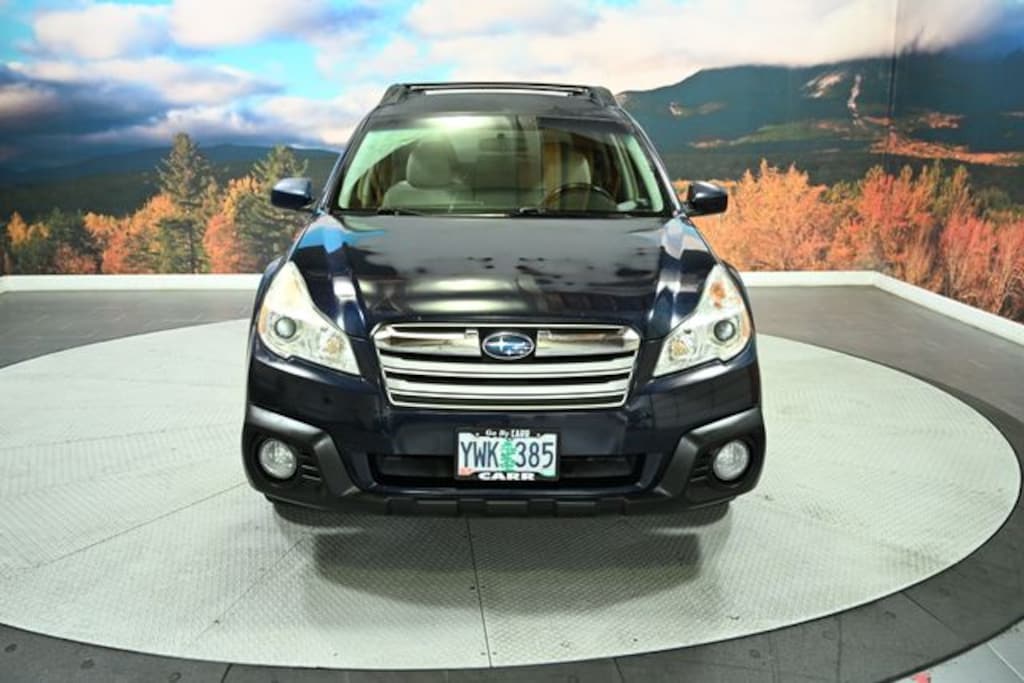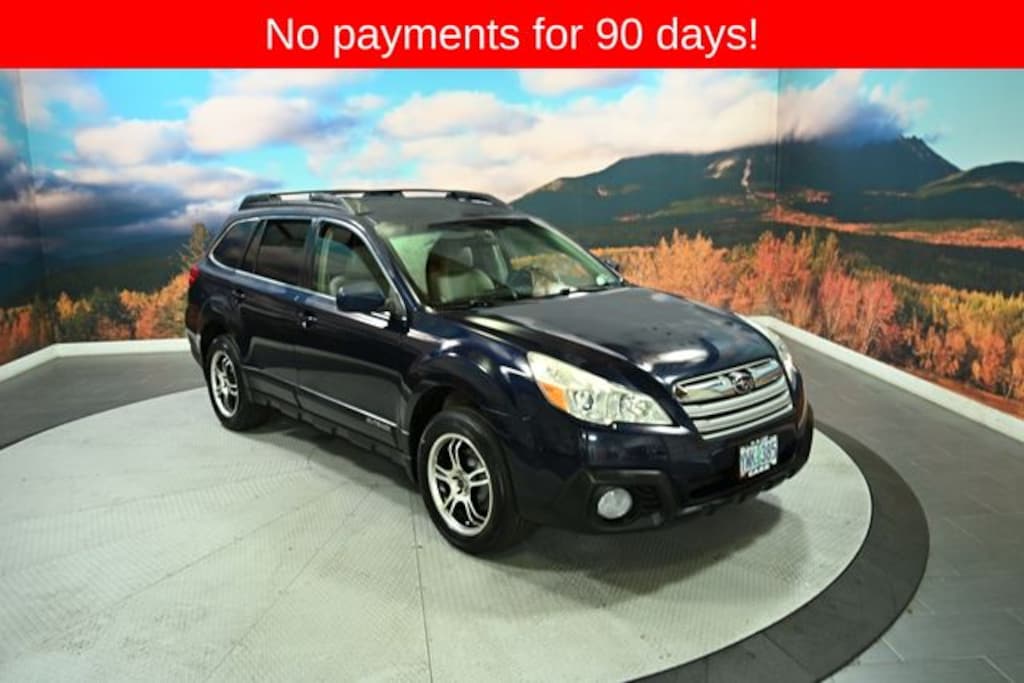 This 2014 Deep Indigo Pearl Subaru Outback 2.5i Premium AWD is well equipped and includes these features and benefits: Standard Model, 17" x 7.0" Aluminum Alloy w/Silver Finish Wheels, 4-Wheel Disc Brakes, 4.444 Axle Ratio, 6 Speakers, ABS brakes, Air Conditioning, Alloy wheels, AM/FM radio: SiriusXM, Anti-whiplash front head restraints, Brake assist, Bumpers: body-color, CD player, Cloth Upholstery, Driver door bin, Driver vanity mirror, Dual front impact airbags, Dual front side impact airbags, Electronic Stability Control, Four wheel independent suspension, Front anti-roll bar, Front Bucket Seats, Front Center Armrest w/Storage, Front fog lights, Front reading lights, Fully automatic headlights, Heated door mirrors, Heated Front Bucket Seats, Heated front seats, Illuminated entry, Leather Shift Knob, Low tire pressure warning, Occupant sensing airbag, Outside temperature display, Overhead airbag, Overhead console, Panic alarm, Passenger door bin, Passenger vanity mirror, Power door mirrors, Power driver seat, Power steering, Power windows, Radio data system, Radio: AM/FM Stereo w/HD Radio & Single CD Player, Rear anti-roll bar, Rear Bumper Cover, Rear Seat Back Cargo Net, Rear seat center armrest, Rear window defroster, Rear window wiper, Remote keyless entry, Roof rack, Security system, Speed control, Speed-sensing steering, Splash Guards, Split folding rear seat, Spoiler, Steering wheel mounted audio controls, Tachometer, Telescoping steering wheel, Tilt steering wheel, Traction control, Trip computer, and Variably intermittent wipers. No CARR payments for 90 days, Sign and Drive sales event!, Great value AWD Subaru.