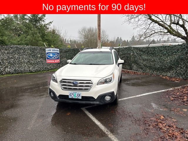 This 2015 Whc Subaru Outback 2.5i Premium AWD is well equipped and includes these features and benefits: Standard Model, 17" x 7.0" Aluminum Alloy w/Silver Finish Wheels, 4-Wheel Disc Brakes, 4.111 Axle Ratio, 6 Speakers, ABS brakes, Air Conditioning, Alloy wheels, AM/FM radio: SiriusXM, Anti-whiplash front head restraints, Automatic temperature control, Brake assist, Bumpers: body-color, CD player, Cloth Upholstery, Driver door bin, Driver vanity mirror, Dual front impact airbags, Dual front side impact airbags, Electronic Stability Control, Exterior Parking Camera Rear, Four wheel independent suspension, Front anti-roll bar, Front Bucket Seats, Front Center Armrest w/Storage, Front dual zone A/C, Front fog lights, Front reading lights, Fully automatic headlights, Heated door mirrors, Heated front seats, Heated Reclining Front Bucket Seats, Illuminated entry, Leather Shift Knob, Low tire pressure warning, Occupant sensing airbag, Outside temperature display, Overhead airbag, Overhead console, Panic alarm, Passenger door bin, Passenger vanity mirror, Power door mirrors, Power driver seat, Power steering, Power windows, Radio data system, Radio: AM/FM Stereo HD Radio w/Single Disc CD, Rear anti-roll bar, Rear seat center armrest, Rear window defroster, Rear window wiper, Rear-Vision Camera, Remote keyless entry, Roof rack, Security system, Speed control, Speed-sensing steering, Split folding rear seat, Spoiler, Steering wheel mounted audio controls, Steering-Wheel Paddle-Shift Control Switches, Tachometer, Telescoping steering wheel, Tilt steering wheel, Traction control, Trip computer, Variably intermittent wipers, and Vehicle Information Display. No CARR payments for 4 months, Sign and Drive sales event!, CARR Cares Advantage up to $3100 in ownership savings, Great value AWD Subaru.