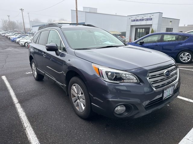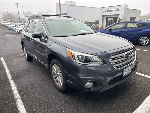 This 2017 Carbide Gray Metallic Subaru Outback 2.5i Premium AWD is well equipped and includes these features and benefits: EyeSight & Blind Spot & Rear Cross Traffic & PRG (Blind Spot Detection (BSD), High Beam Assist, Power Rr Gate w/ Automatic Close & Height Memory, and Rear Cross Traffic Alert (RCTA)), Popular Package #5 (All Weather Floor Mats, Exterior Auto Dimming Mirror For BSD, Rear Bumper Cover, Rear Seat Back Protector, and Splash Guards), 17" x 7.0" Aluminum Alloy w/Silver Finish Wheels, 4-Wheel Disc Brakes, 4.111 Axle Ratio, 6 Speakers, ABS brakes, Adaptive Cruise Control, Air Conditioning, Alloy wheels, AM/FM radio: SiriusXM, Anti-whiplash front head restraints, Automatic temperature control, Brake assist, Bumpers: body-color, CD player, Cloth Upholstery, Driver door bin, Driver vanity mirror, Dual front impact airbags, Dual front side impact airbags, Electronic Stability Control, Emergency communication system, Exterior Parking Camera Rear, Four wheel independent suspension, Front anti-roll bar, Front Bucket Seats, Front Center Armrest w/Storage, Front dual zone A/C, Front fog lights, Front reading lights, Fully automatic headlights, Heated door mirrors, Heated front seats, Heated Reclining Front Bucket Seats, Illuminated entry, Lane Departure Warning System, Leather Shift Knob, Low tire pressure warning, Occupant sensing airbag, Outside temperature display, Overhead airbag, Overhead console, Panic alarm, Passenger door bin, Passenger vanity mirror, Power door mirrors, Power driver seat, Power steering, Power windows, Pre-Collision System, Radio: Subaru Starlink 7.0" Multimedia Plus System, Rear anti-roll bar, Rear seat center armrest, Rear window defroster, Rear window wiper, Remote keyless entry, Roof rack, Security system, Smartphone Integration, Speed control, Speed-sensing steering, Split folding rear seat, Spoiler, Steering wheel mounted audio controls, Steering-Wheel Paddle-Shift Control Switches, Sun Shade, Tachometer, Telescoping steering wheel, Tilt steering wheel, Traction control, Trip computer, Variably intermittent wipers, and Vehicle Information Display.