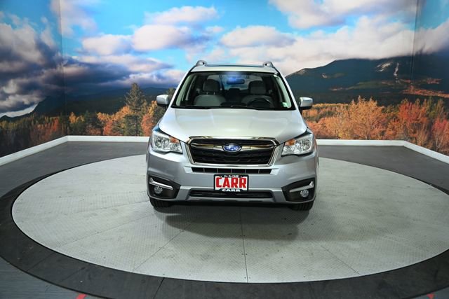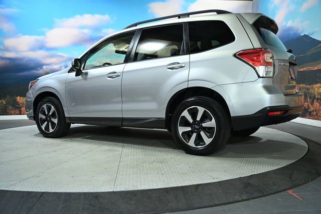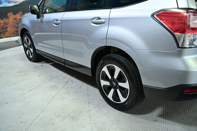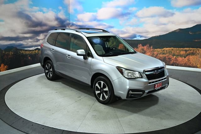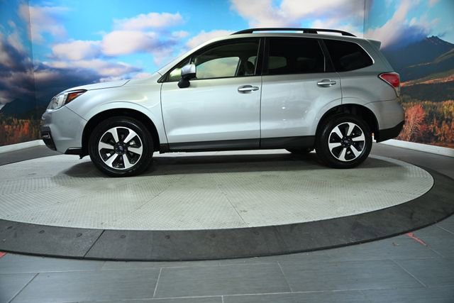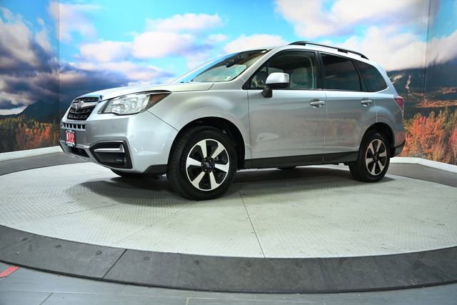 This 2018 Ice Silver Metallic Subaru Forester 2.5i Premium AWD is well equipped and includes these features and benefits: 3.70 Axle Ratio, 4-Wheel Disc Brakes, 6 Speakers, ABS brakes, Active Cruise Control, Air Conditioning, Alloy wheels, AM/FM radio: SiriusXM, Automatic temperature control, Blind Spot Detection, Blind Spot Detection w/Rear Cross Traffic Alert, Brake assist, Bumpers: body-color, CD player, Driver door bin, Driver vanity mirror, Dual front impact airbags, Dual front side impact airbags, Electronic Stability Control, Emergency communication system: STARLINK, Exterior Parking Camera Rear, EyeSight System, Four wheel independent suspension, Front anti-roll bar, Front Bucket Seats, Front Center Armrest, Front fog lights, Front reading lights, Heated Exterior Mirrors, Heated Front Seats, Illuminated entry, Knee airbag, Low tire pressure warning, Occupant sensing airbag, Outside temperature display, Overhead airbag, Overhead console, Panic alarm, Passenger door bin, Passenger vanity mirror, Power door mirrors, Power driver seat, Power moonroof, Power Rear Gate, Power steering, Power windows, Radio data system, Radio: Subaru Starlink 7.0 Multimedia Plus System, Rear anti-roll bar, Rear seat center armrest, Rear window defroster, Rear window wiper, Remote keyless entry, Roof rack: rails only, Security system, Speed control, Split folding rear seat, Spoiler, Steering wheel mounted audio controls, Tachometer, Telescoping steering wheel, Tilt steering wheel, Traction control, Trip computer, Variably intermittent wipers, and Wheels: 17 x 7.0J Black Machine Finish Alloy.