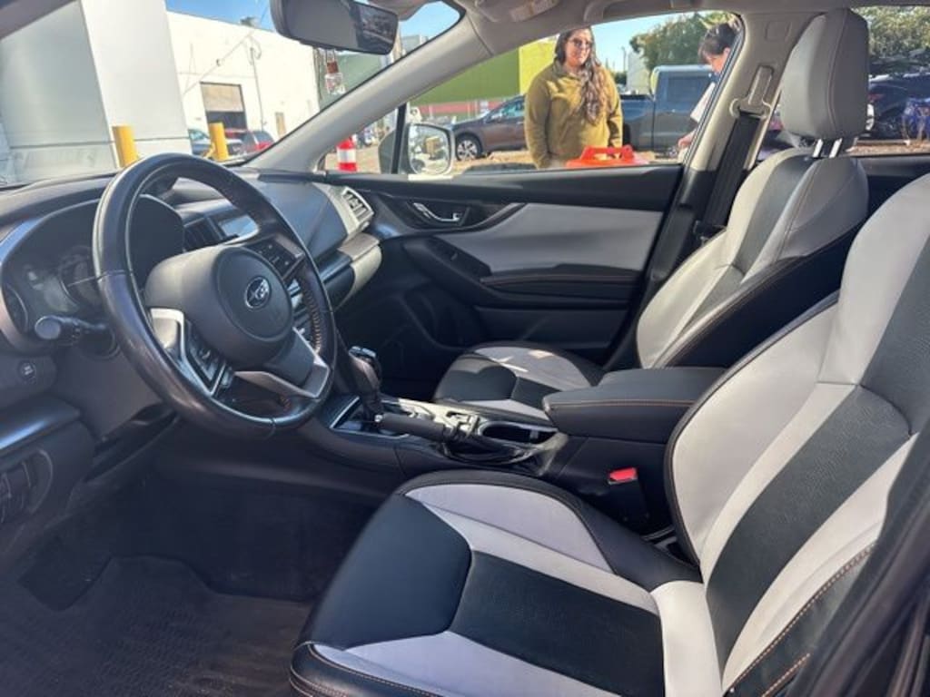 This 2019 Gray Subaru Crosstrek 2.0i Limited AWD is well equipped and includes these features and benefits: 18" Alloy Wheels, 3.90 Axle Ratio, 4-Wheel Disc Brakes, 6 Speakers, ABS brakes, Air Conditioning, Alloy wheels, AM/FM radio: SiriusXM, Auto High-beam Headlights, Automatic temperature control, Brake assist, Bumpers: body-color, CD player, Driver door bin, Driver vanity mirror, Dual front impact airbags, Dual front side impact airbags, Electronic Stability Control, Emergency communication system: STARLINK Safety and Security, Exterior Parking Camera Rear, Four wheel independent suspension, Front anti-roll bar, Front Bucket Seats, Front Center Armrest, Front fog lights, Front reading lights, Fully automatic headlights, Heated door mirrors, Heated Front Bucket Seats, Heated front seats, Illuminated entry, Knee airbag, Leather Shift Knob, Leather-Trimmed Upholstery, Low tire pressure warning, Occupant sensing airbag, Outside temperature display, Overhead airbag, Overhead console, Panic alarm, Passenger door bin, Passenger vanity mirror, Power door mirrors, Power driver seat, Power steering, Power windows, Radio data system, Radio: Subaru Starlink 8.0" Multimedia Plus System, Rear anti-roll bar, Rear seat center armrest, Rear window defroster, Rear window wiper, Remote keyless entry, Roof rack: rails only, Security system, Speed control, Speed-sensing steering, Split folding rear seat, Spoiler, STARLINK/Apple CarPlay/Android Auto, Steering wheel mounted audio controls, Subaru Starlink Smartphone Integration, Tachometer, Telescoping steering wheel, Tilt steering wheel, Traction control, Trip computer, Turn signal indicator mirrors, and Variably intermittent wipers.