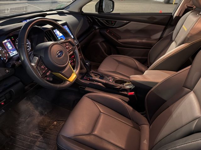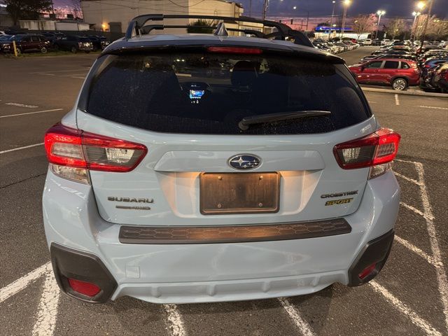 This 2021 Cool Gray Khaki Subaru Crosstrek Sport AWD is well equipped and includes these features and benefits: Moonroof Package (Blind Spot Detection (BSD), Power Moonroof, Radio: Subaru STARLINK 8.0" Multimedia Plus System, and Subaru STARLINK Smartphone Integration), 3.70 Axle Ratio, 4-Wheel Disc Brakes, 6 Speakers, ABS brakes, Air Conditioning, Alloy wheels, AM/FM radio: SiriusXM, Anti-whiplash front head restraints, Automatic temperature control, Brake assist, Bumpers: body-color, CD player, Driver door bin, Driver vanity mirror, Dual front impact airbags, Dual front side impact airbags, Electronic Stability Control, Emergency communication system: STARLINK Safety and Security (Subscription Required), Exterior Parking Camera Rear, Four wheel independent suspension, Front anti-roll bar, Front Bucket Seats, Front Center Armrest, Front fog lights, Front reading lights, Fully automatic headlights, Heated door mirrors, Heated Front Bucket Seats, Heated front seats, Illuminated entry, Knee airbag, Leather Shift Knob, Low tire pressure warning, Occupant sensing airbag, Outside temperature display, Overhead airbag, Overhead console, Panic alarm, Passenger door bin, Passenger vanity mirror, Power door mirrors, Power steering, Power windows, Radio data system, Radio: Subaru STARLINK 6.5" Multimedia Plus System, Rear anti-roll bar, Rear window defroster, Rear window wiper, Remote keyless entry, Security system, Speed control, Speed-sensing steering, Split folding rear seat, Spoiler, STARLINK/Apple CarPlay/Android Auto, StarTex Upholstery, Steering wheel mounted audio controls, Tachometer, Telescoping steering wheel, Tilt steering wheel, Traction control, Trip computer, Turn signal indicator mirrors, Variably intermittent wipers, and Wheels: 17" Alloy Dark Gray Finish Sport Type.