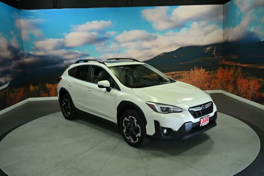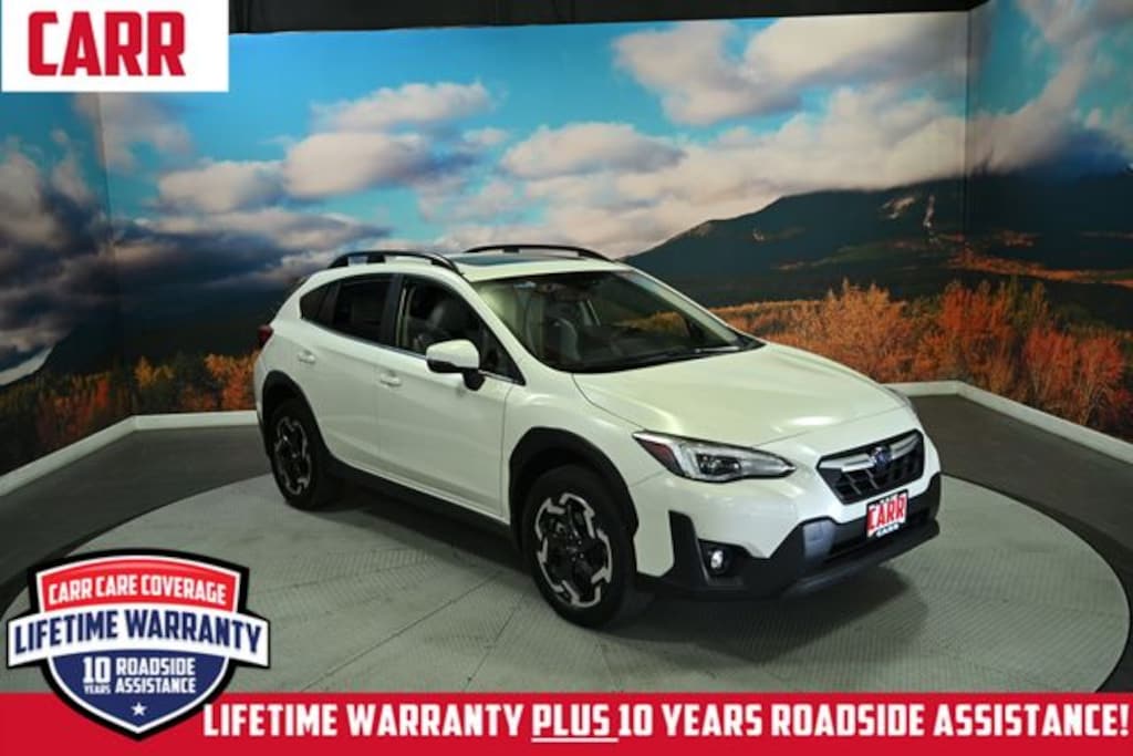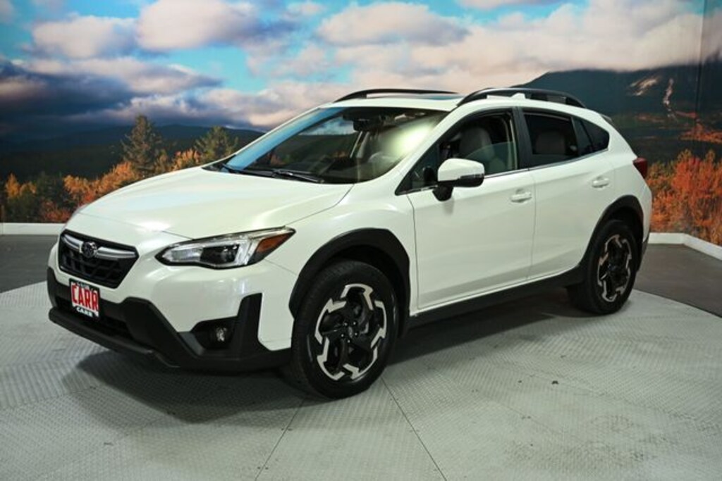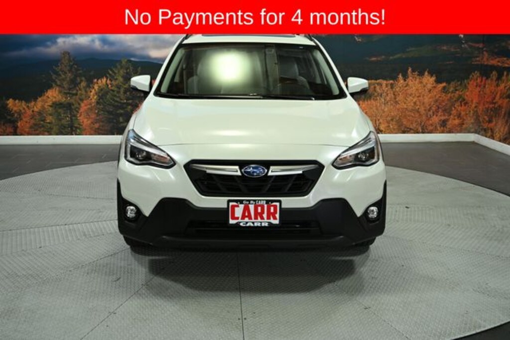 This 2021 Crystal White Pearl Subaru Crosstrek Limited AWD is well equipped and includes these features and benefits: Moonroof Package 2 (harman/kardon Speaker System, Power Moonroof, Radio: Subaru STARLINK 8.0" Multimedia Nav System, and Subaru STARLINK Smartphone Integration), Popular Package #2 (All-Weather Floor Liners, Auto-Dimming Mirror w/Compass & HomeLink, Rear Bumper Cover, Rear Seatback Protector, and Splash Guards), 3.70 Axle Ratio, 4-Wheel Disc Brakes, 6 Speakers, ABS brakes, Air Conditioning, Alloy wheels, AM/FM radio: SiriusXM, Anti-whiplash front head restraints, Auto High-beam Headlights, Automatic temperature control, Brake assist, Bumpers: body-color, CD player, Driver door bin, Driver vanity mirror, Dual front impact airbags, Dual front side impact airbags, Electronic Stability Control, Emergency communication system: STARLINK Safety and Security (Subscription Required), Exterior Parking Camera Rear, Four wheel independent suspension, Front anti-roll bar, Front Bucket Seats, Front Center Armrest, Front fog lights, Front reading lights, Fully automatic headlights, Heated door mirrors, Heated Front Bucket Seats, Heated front seats, Illuminated entry, Knee airbag, Leather-Trimmed Upholstery, Low tire pressure warning, Occupant sensing airbag, Outside temperature display, Overhead airbag, Overhead console, Panic alarm, Passenger door bin, Passenger vanity mirror, Power door mirrors, Power driver seat, Power steering, Power windows, Radio data system, Radio: Subaru STARLINK 8.0" Multimedia Plus System, Rear anti-roll bar, Rear seat center armrest, Rear window defroster, Rear window wiper, Remote keyless entry, Security system, Speed control, Speed-sensing steering, Split folding rear seat, Spoiler, STARLINK/Apple CarPlay/Android Auto, Steering wheel mounted audio controls, Tachometer, Telescoping steering wheel, Tilt steering wheel, Traction control, Trip computer, Turn signal indicator mirrors, Variably intermittent wipers, and Wheels: 18" Alloy Machine Finish. Lifetime powertrain warranty, No CARR payments for 4 months, Sign and Drive sales event!, CARR Cares Advantage up to $3100 in ownership savings.